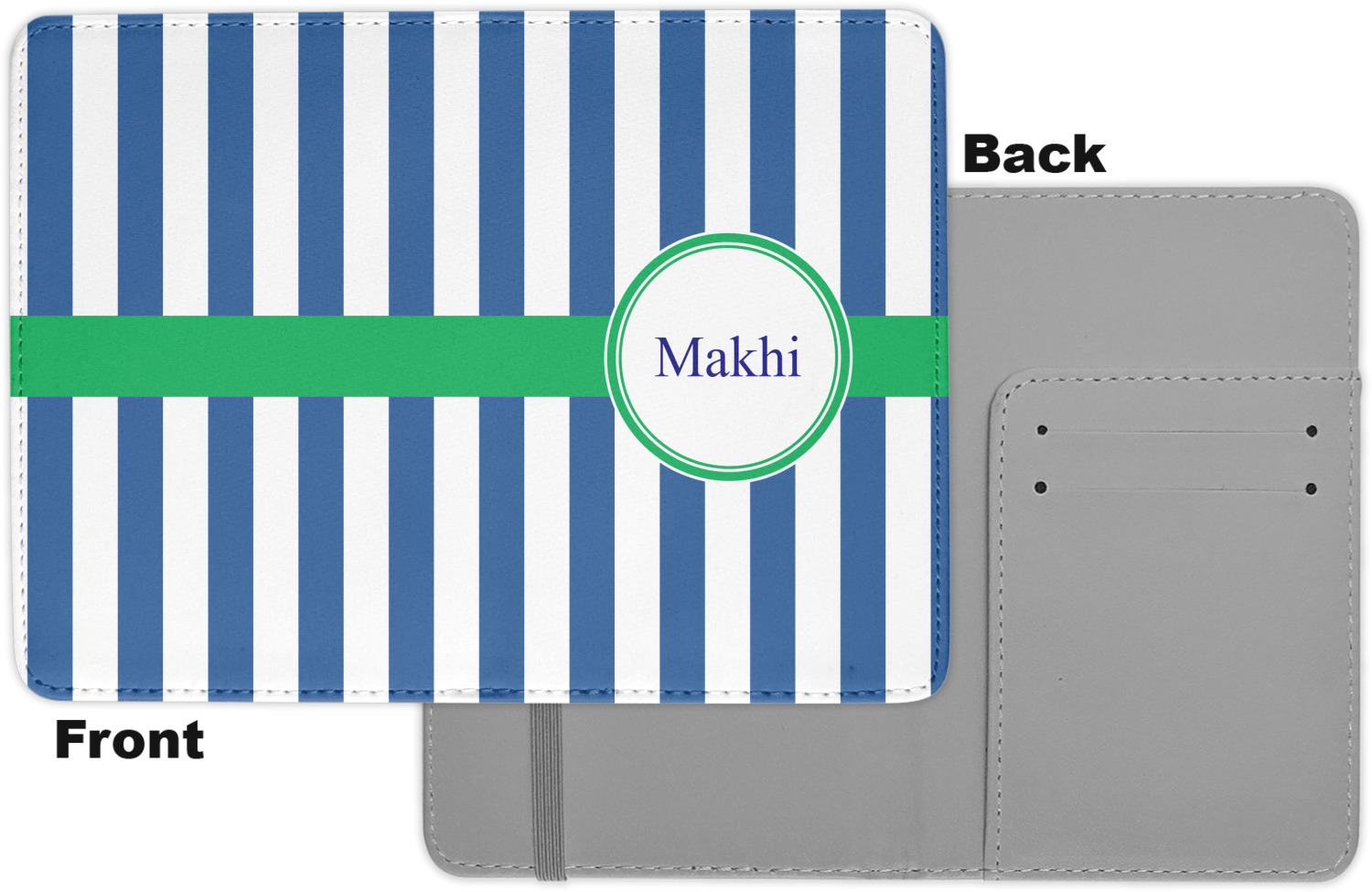 The passport holder has a beautiful inside made of faux leather, while the outside is a smooth slick vinyl like material printed with your personal design.