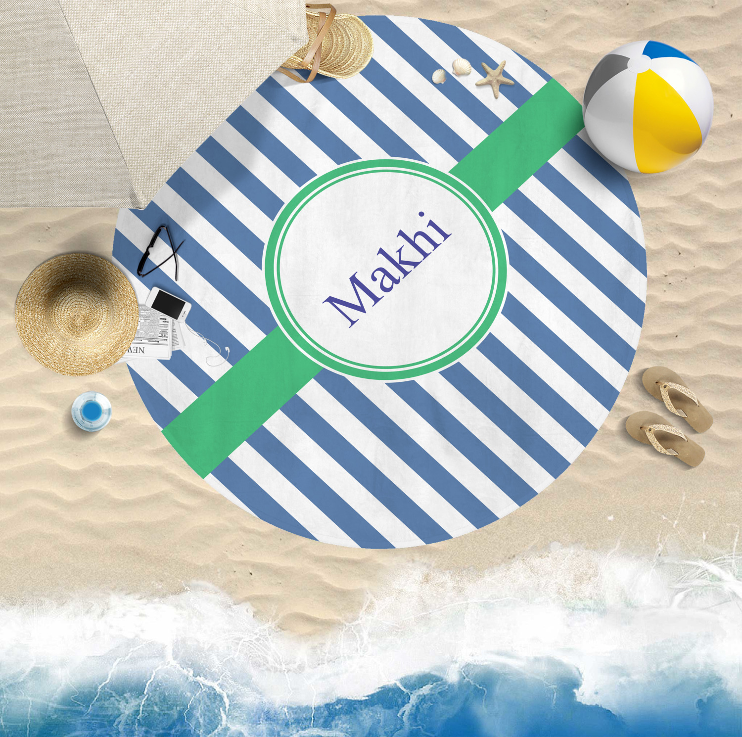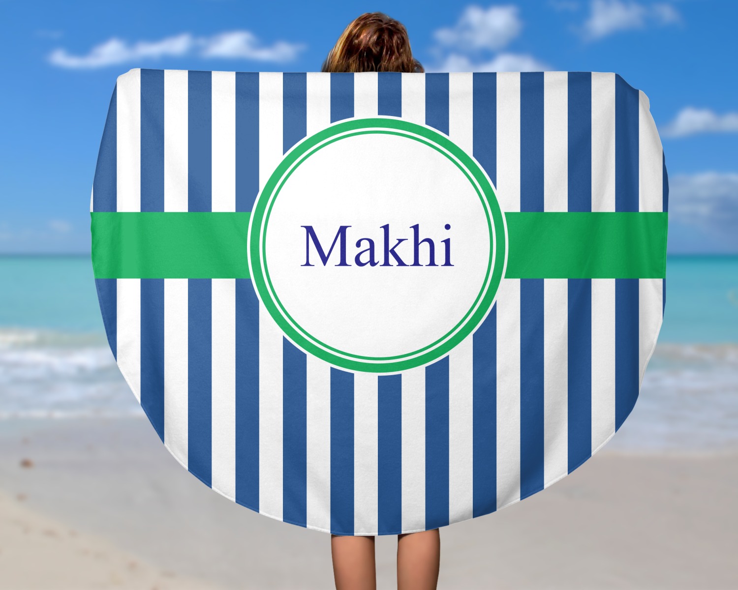 Think out of the box on your next beach, pool, or picnic day in style on your personalized round towel. This must have durable accessory is the perfect size for keeping you, and your possessions out of the sand. Sprawl out in the sun without getting your hands dirty, the unique round design allows for a full range of motion.