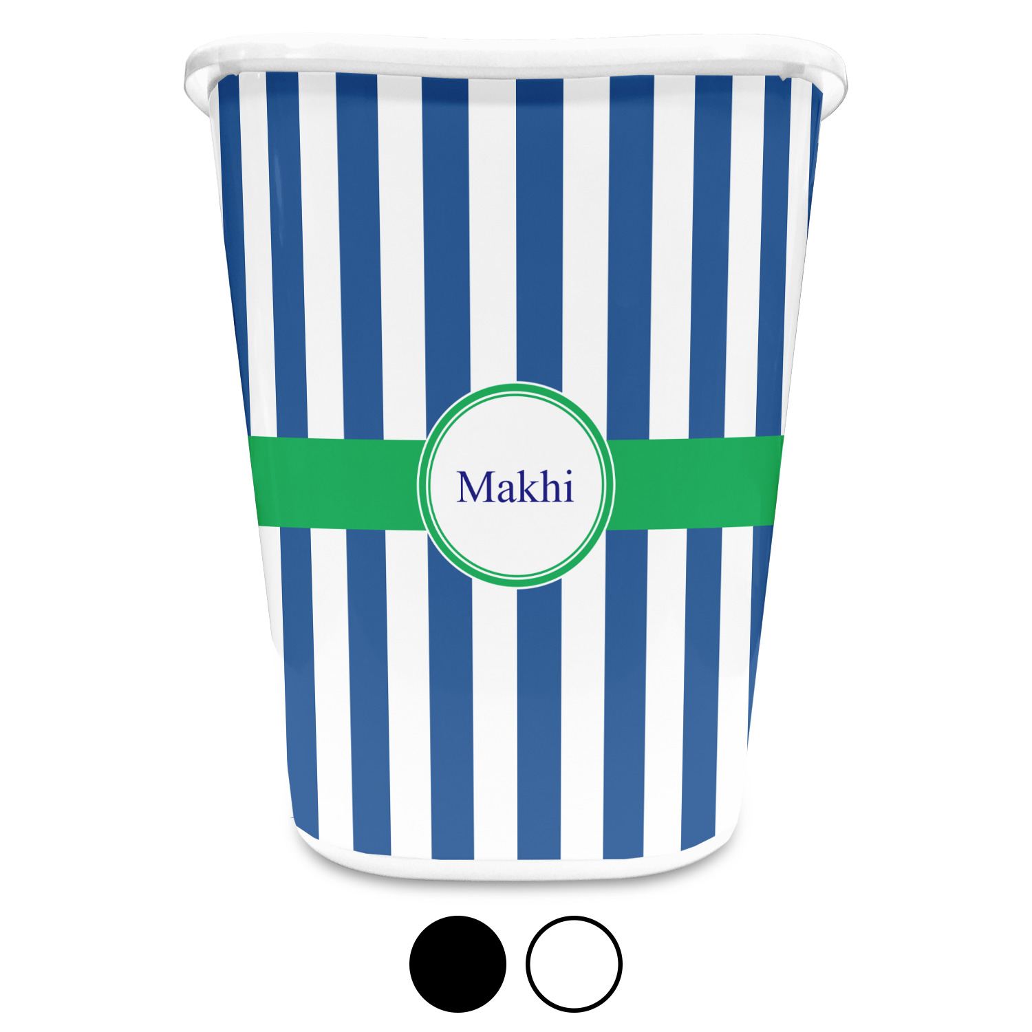 You can choose to purchase these decorative wastebaskets in either a white or a black color that will show on the base and the upper rim. Your customization is printed on a high-gloss, fine-quality vinyl adhesive, and you can choose to either have this adhesive applied to one side only or to both sides. As such, this plastic wastebasket can be single-sided or double-sided, depending on your creative vision. Your customization is printed using durable inks, making the design waterproof and resistant to fading over time.