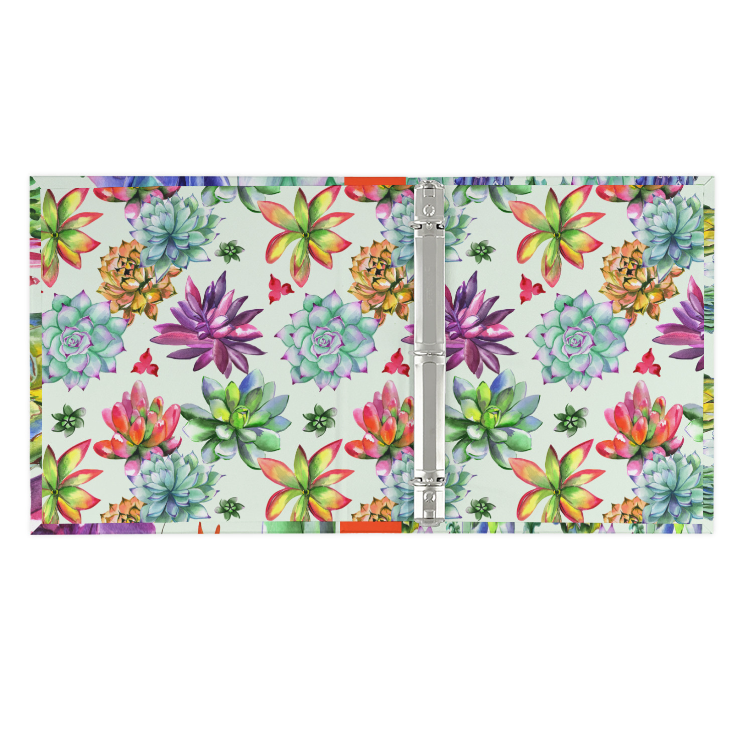 The outside is printed in 3 sections - front cover, spine and back cover - while the inside is printed in a full single print of your choice. The inside boasts a high quality nickel plated binder mechanism with a trigger opening function and is secured to the cardboard binder with posts and screws.