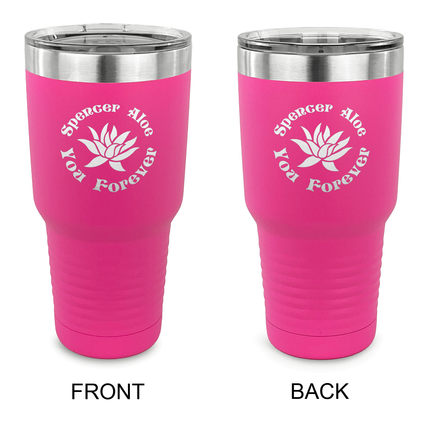With the 5 colors - Black, Navy, Red, Pink and Coral, you are sure to find a cup to fit your personality. You can chose to engrave on the front or the front and back of the cup. Use our design studio to design your own cup and we laser engrave it for you.