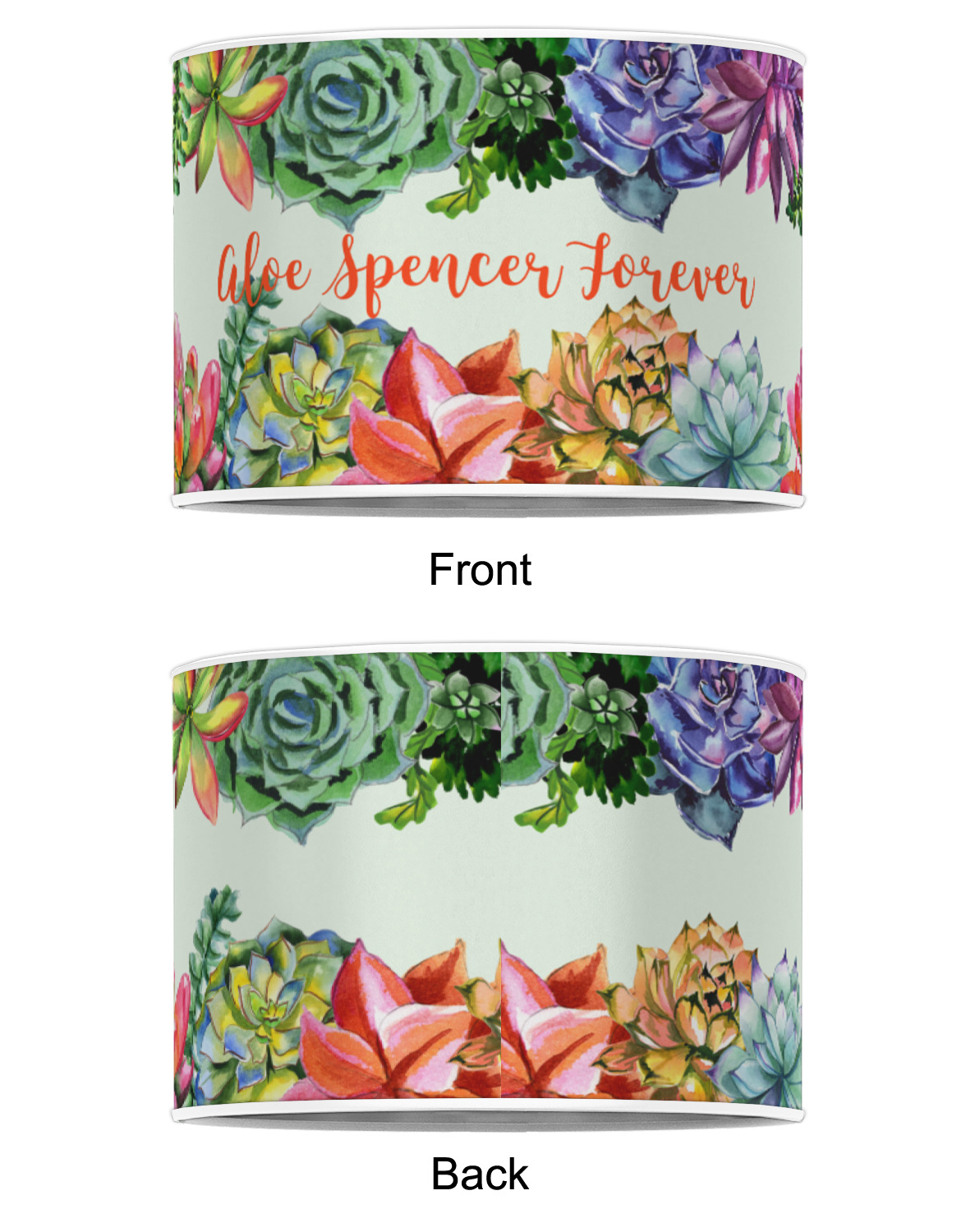 Our customized lamp shades also come in 3 different sizes: 8", 12" and 16", measuring at 8" in diameter by 6" tall, 12" in diameter by 8" tall, and 16" in diameter by 10" tall, respectively.