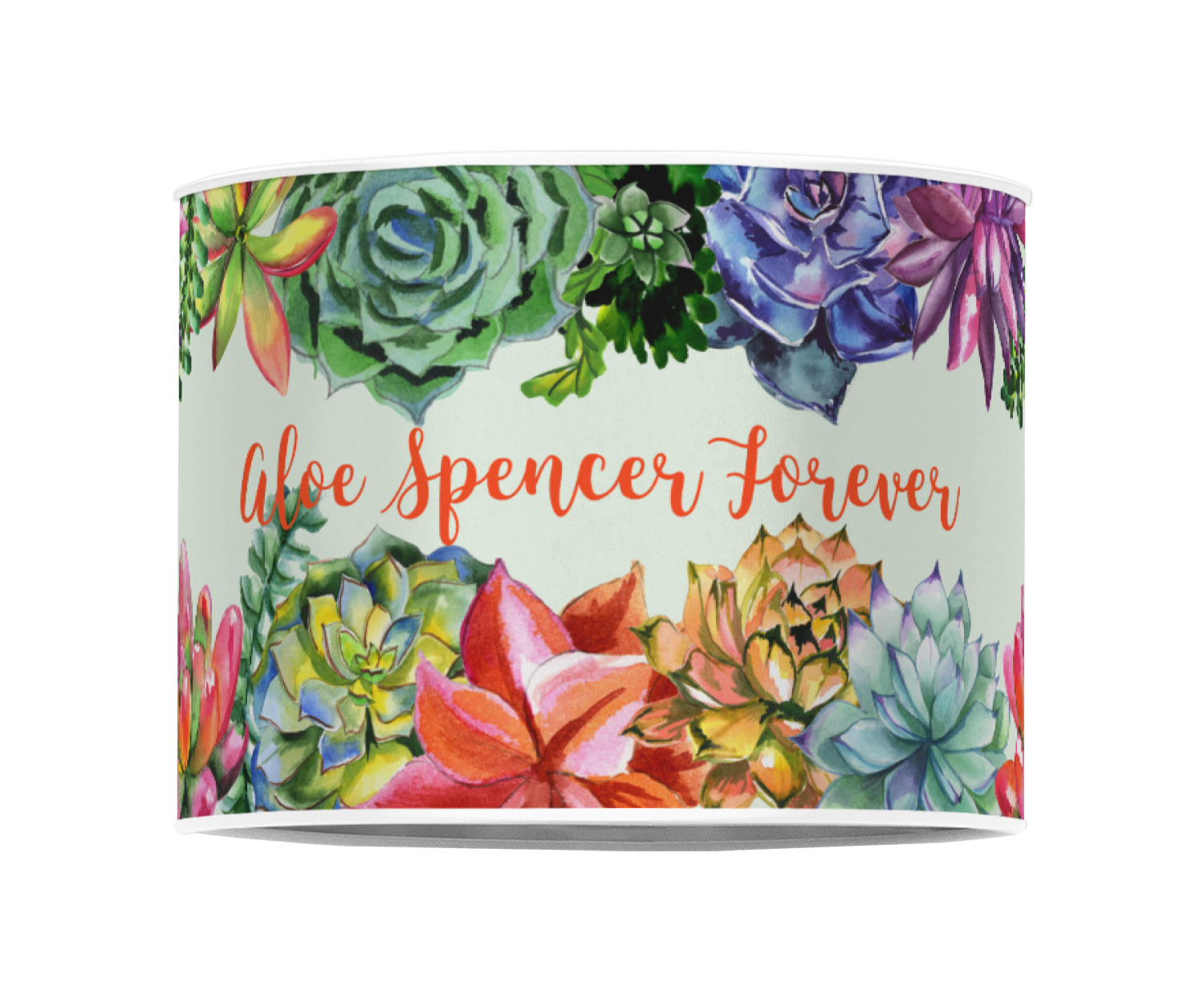 This design is made up of a beautiful frame of succulent illustrations. Because of the nature of the frame, this design will look different on every product. The background is a calming light green. The middle text says "Spencer, Aloe You Forever", which can easily be personalized to your own name or someone else's. You will find orange, green, purple, pink, and orange in this lovely design.