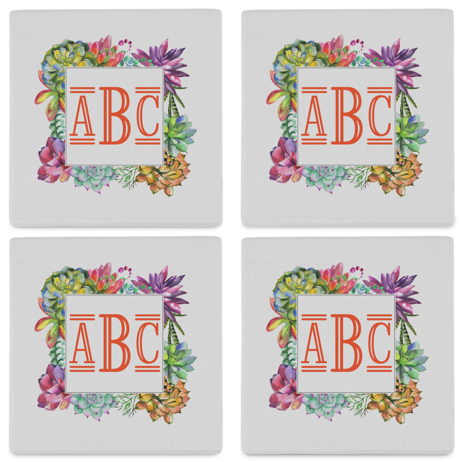 By default, the 4 coasters all have the same design on them, however, you can change that and have a different design on each one of the 4 coasters. The choice is yours.