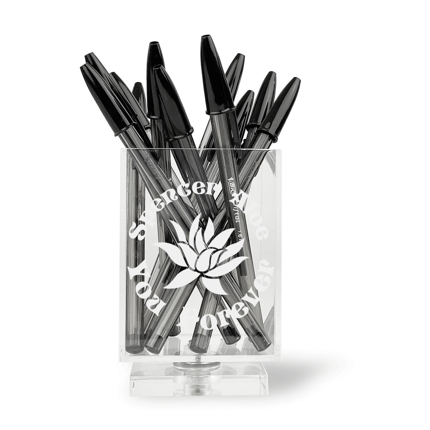 Add a great accessory to your desk with one of these acrylic pen holders. A great way to store your writing utensils, and personalized to suit your needs.