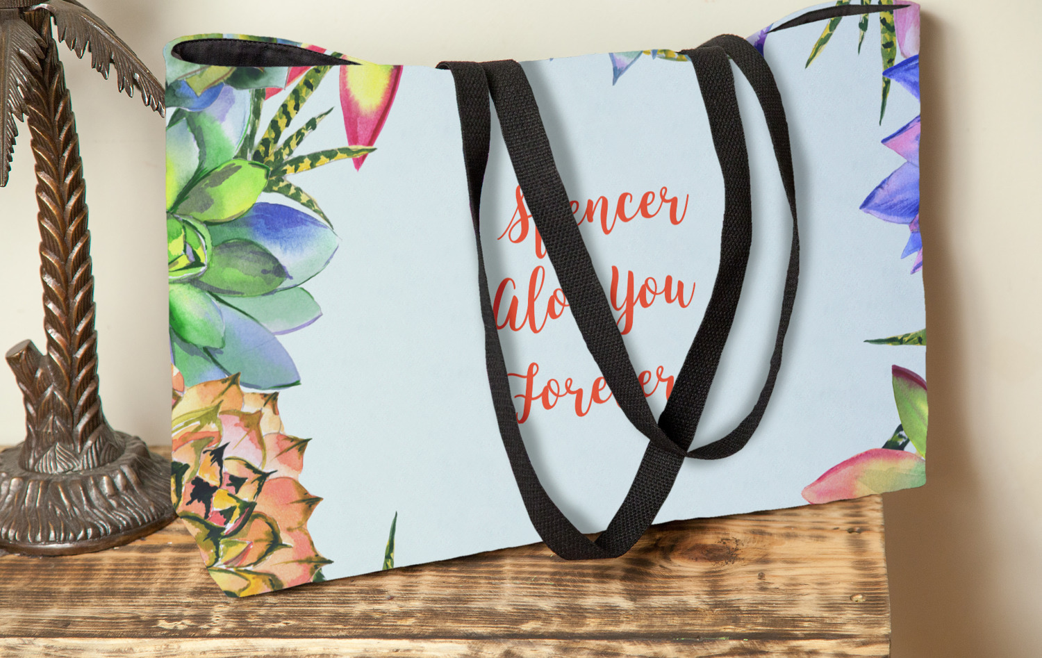 You can design the totes with a design on the front and another one on the back. The two designs can be identical or completely different. The choice is yours.