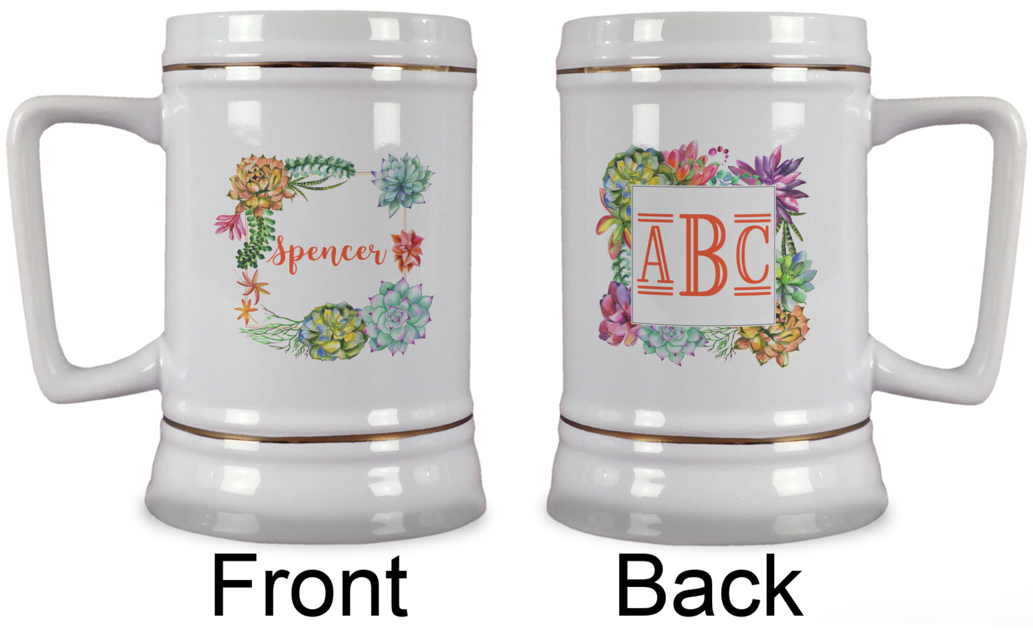 We don't have minimum order quantities on these beer steins. Each beer stein can be customized and personalized in full color on the front and the back. And each stein can be customized for each person in your group.