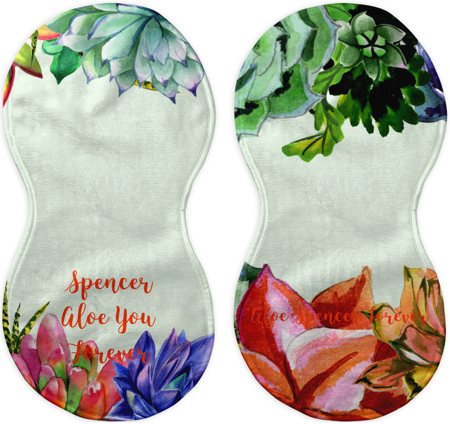 Choose your baby burp cloth from our two styles - Fleece (rectangular) or Microfiber Velour (peanut shape). The lightweight and absorbent design makes each burp cloth multipurpose; use them as a burp pad, a lap pad, a changing table, or a spare cloth to clean up any baby mess. Your customization is displayed across the front with baby-safe ink to ensure extra comfort with a white backing.