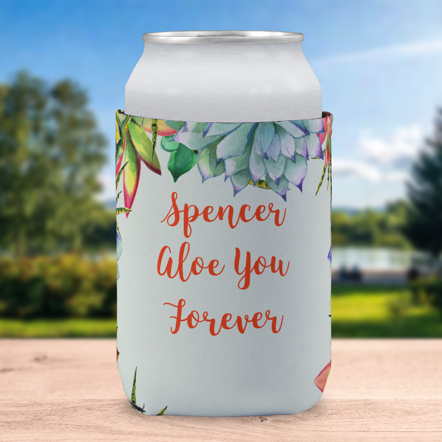 This design is made up of a beautiful frame of succulent illustrations. Because of the nature of the frame, this design will look different on every product. The background is a calming light green. The middle text says "Spencer, Aloe You Forever", which can easily be personalized to your own name or someone else's. You will find orange, green, purple, pink, and orange in this lovely design.