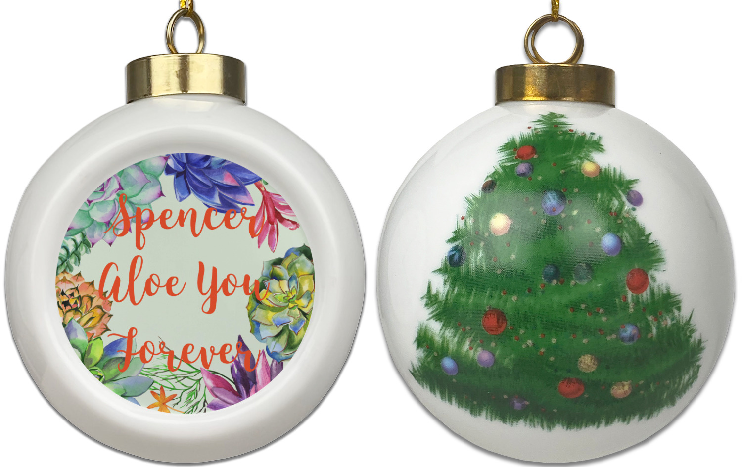 Our Christmas ornaments are a unique ceramic ball shape with a twist as it has a flat face to display your custom design! Select from one of our two design types - Christmas Tree or Poinsettia Garland - to adorn the curved back of your personal design. Each ornament measures 3H x 2.5W x 2D accompanied with a gold string accent for finishing touches to hang on your beautiful Christmas tree!