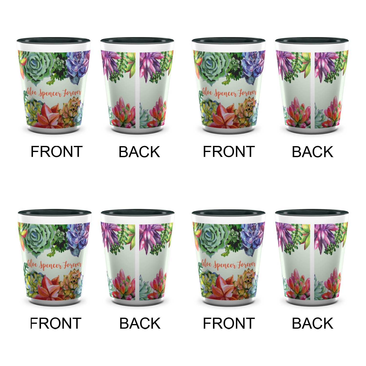 Made from ceramic these shot glasses are printed in full color with the design of your choice. These are a standard 1.5oz size and stand 2.25" tall. Available in a full white ceramic or a two-tone with a black color inside the shot glass. Buy a single or a set of 4, all of which can be designed separately to get you just what you want and need.