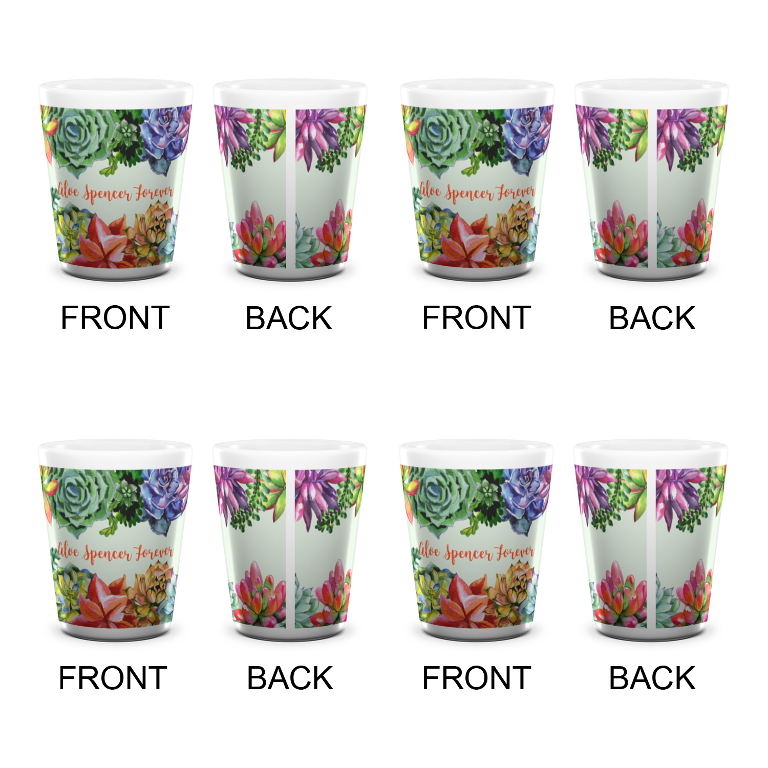 Made from ceramic these shot glasses are printed in full color with the design of your choice. These are a standard 1.5oz size and stand 2.25" tall. Available in a full white ceramic or a two-tone with a black color inside the shot glass. Buy a single or a set of 4, all of which can be designed separately to get you just what you want and need.