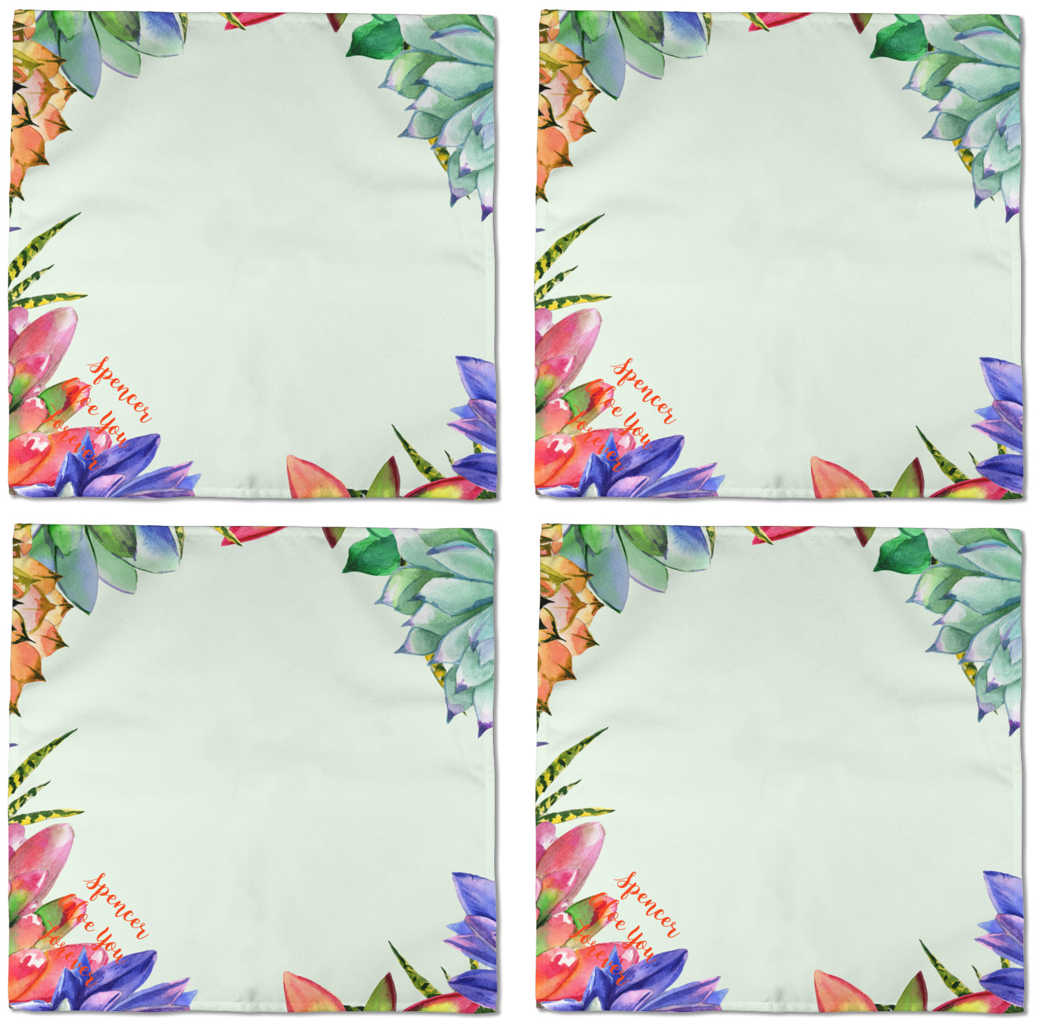 Each customizable cloth napkin is a polyester material guaranteed for long-term use. Since our napkins are cloth, it serves as a great reusable and eco-friendly dining decor. We sell personalized napkins individually or as a set of 4! Print your own unique design on all four napkins, or create four individual designs for each napkin! We offer two different napkin sizes - Cocktail napkins (approx. 10 x 10) and Dinner napkins (approx. 20 x 20). We print your design on one side, perfect for displaying your custom designed lunch napkins in any fold or table setting!