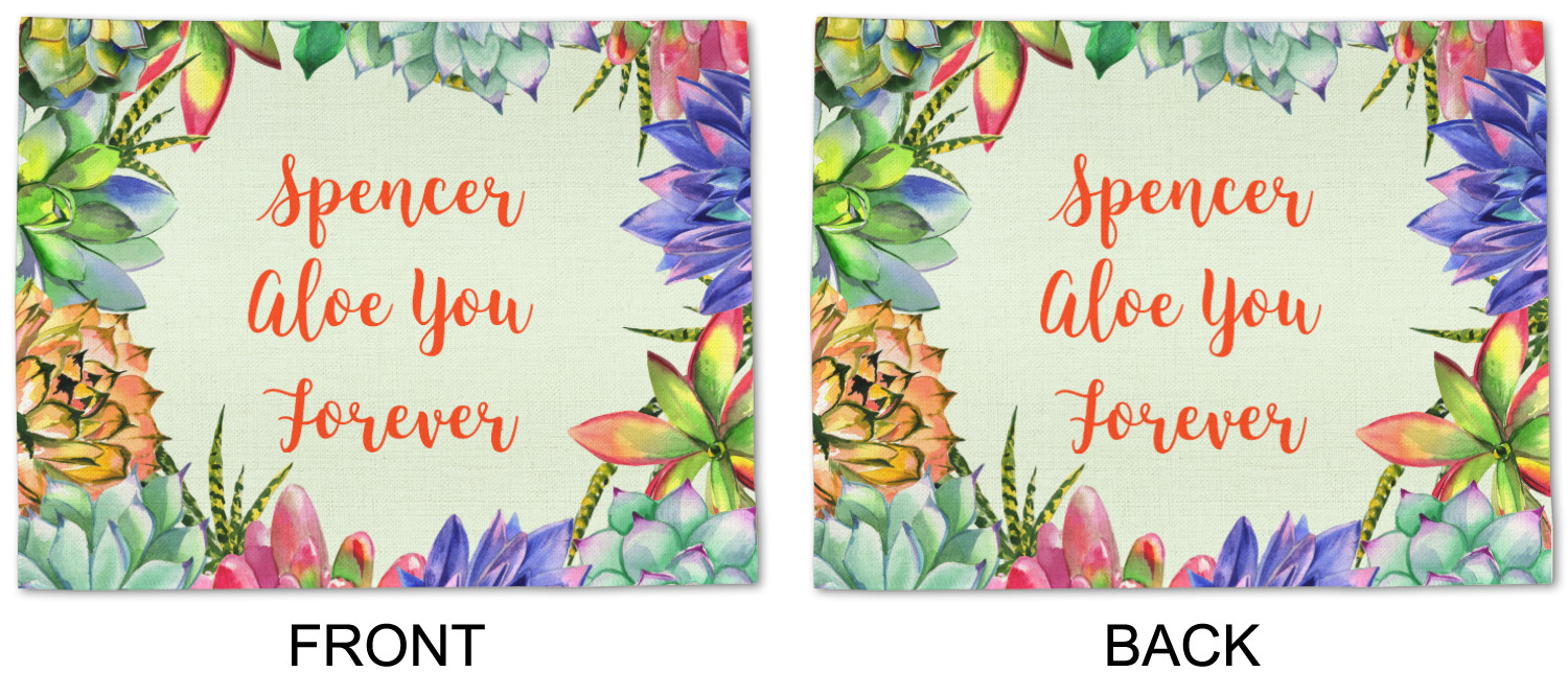 This design is made up of a beautiful frame of succulent illustrations. Because of the nature of the frame, this design will look different on every product. The background is a calming light green. The middle text says "Spencer, Aloe You Forever", which can easily be personalized to your own name or someone else's. You will find orange, green, purple, pink, and orange in this lovely design.