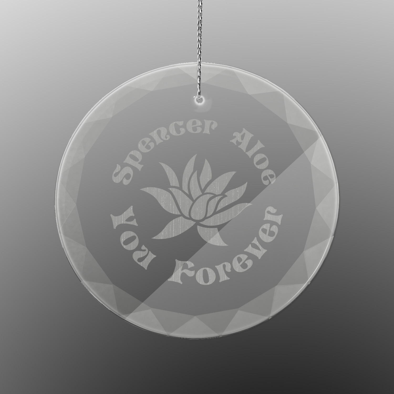 We offer four different clear glass ornaments to personalize. Choose one of our heart-shaped, bell-shaped, round, and octagon ornaments. Each glass ornament is engraved with a design of your choice. Create a quote, use a photo, or logo for us to etch into your custom ornament. We pair each ornament with a silver string for you to hang on your Christmas tree!