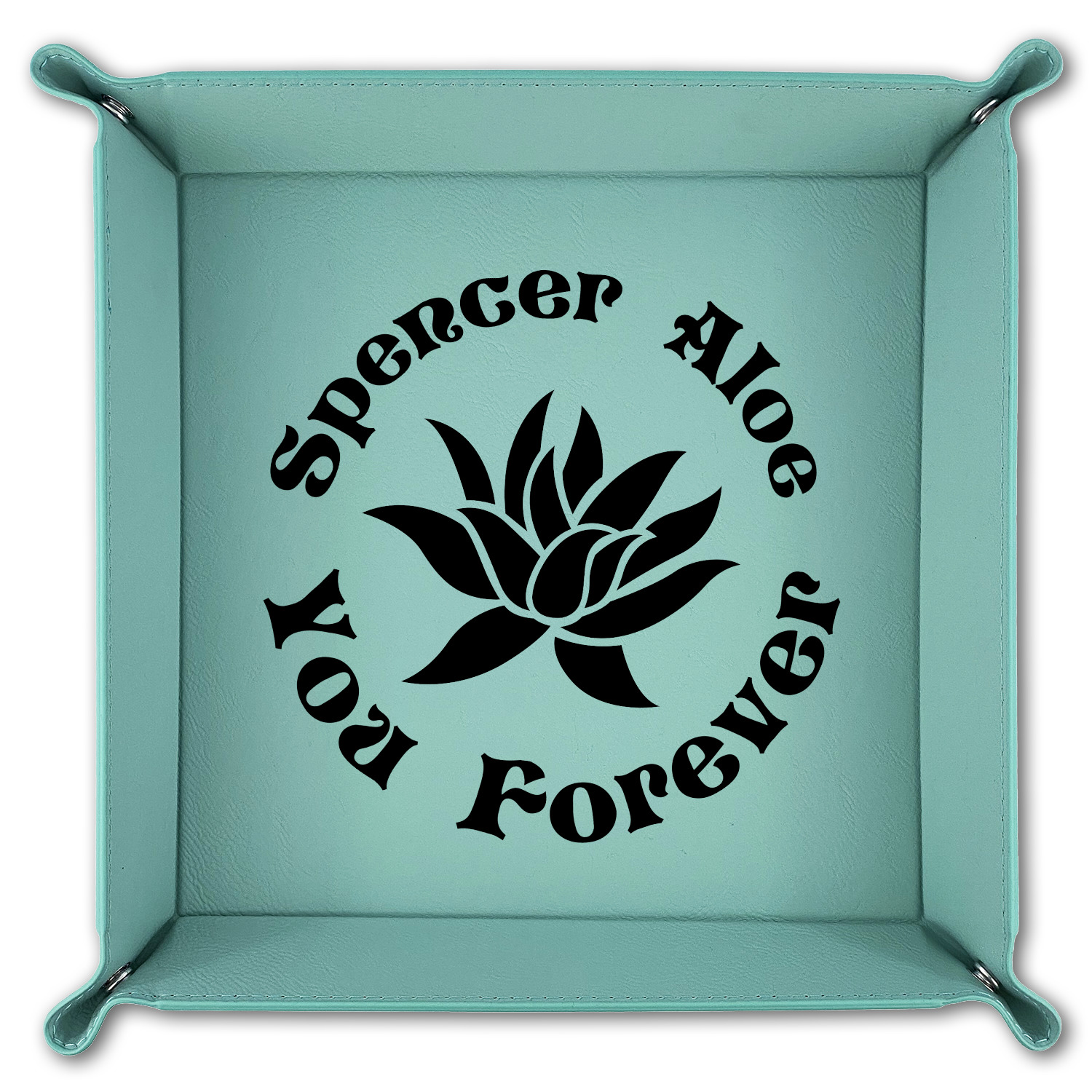 This design is made up of a beautiful frame of succulent illustrations. Because of the nature of the frame, this design will look different on every product. The background is a calming light green. The middle text says "Spencer, Aloe You Forever", which can easily be personalized to your own name or someone else's. You will find orange, green, purple, pink, and orange in this lovely design.