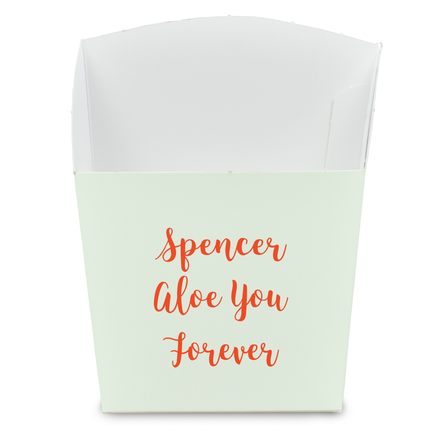 These favor boxes are printed in full color on quality cardstock - so coordinating the french fry favor boxes to match your event's themes or colors should be a breeze. You can upload your own design including artwork, logos or photos