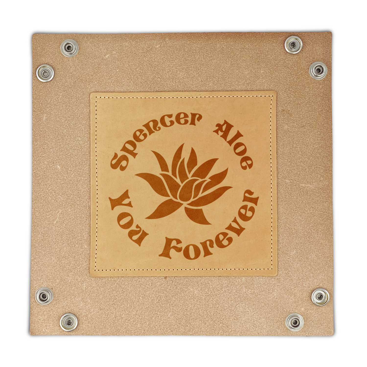 This design is made up of a beautiful frame of succulent illustrations. Because of the nature of the frame, this design will look different on every product. The background is a calming light green. The middle text says "Spencer, Aloe You Forever", which can easily be personalized to your own name or someone else's. You will find orange, green, purple, pink, and orange in this lovely design.
