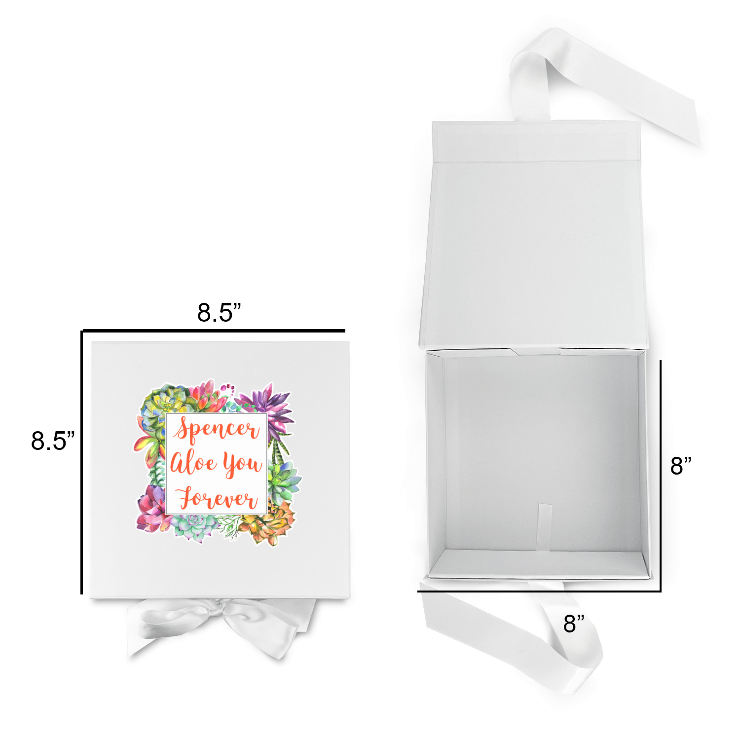 Design your own using our design library and we will print your artwork onto the lid of the gift box. When the box is closed the ribbons can be tied to secure the lid and add to the elegant look of these gift boxes.
