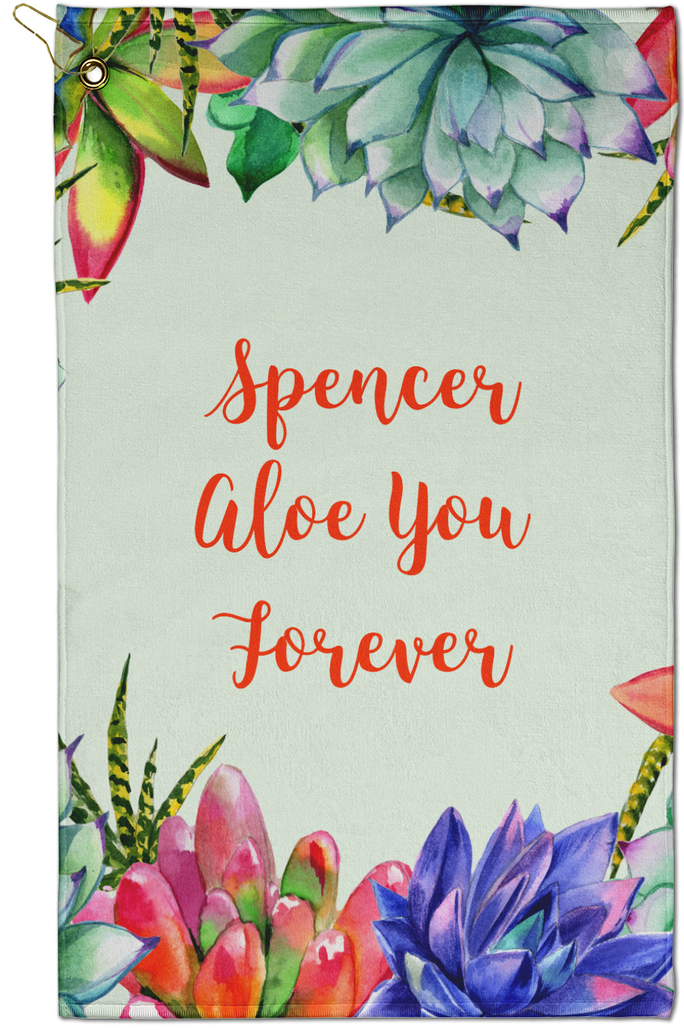 This design is made up of a beautiful frame of succulent illustrations. Because of the nature of the frame, this design will look different on every product. The background is a calming light green. The middle text says "Spencer, Aloe You Forever", which can easily be personalized to your own name or someone else's. You will find orange, green, purple, pink, and orange in this lovely design.