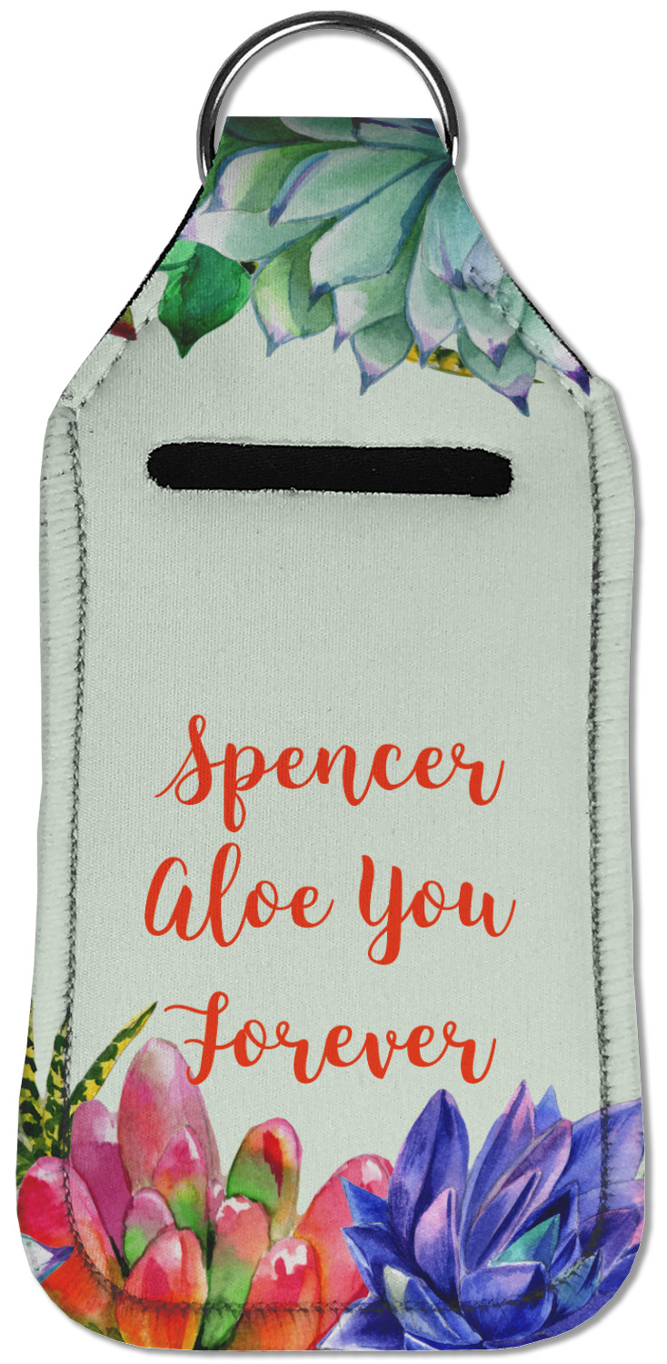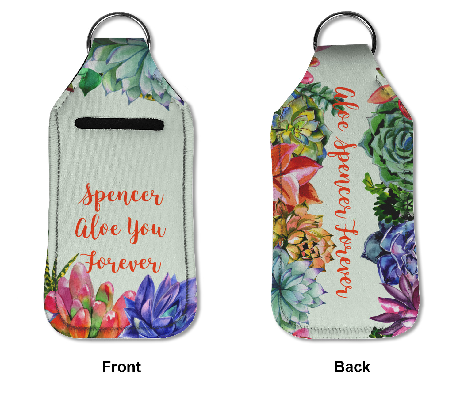 Each hand sanitizer holder comes with its own empty travel-sized, refillable hand sanitizer sure to fit snug in your customized sanitizer case! Our hand sanitizer cases are a durable, yet soft neoprene material sure to last any daily activities or travel agenda. Customize and personalize a hand sanitizer bottle holder with one of our two sizes - small (4.25" x 2.25") or large (5.5" x 2.5"). Each travel sanitizer holder comes with a keyring for attachment on bags, keys, or more!