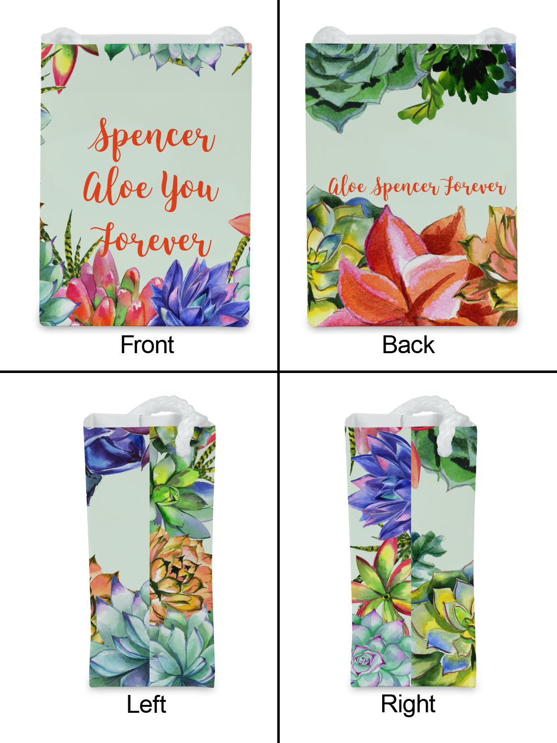 You can design a your gift bag by customizing one of our design templates. Our design studio enables you to customize your design - you can change any part of the design template. You can also upload a photo, logo or any image.