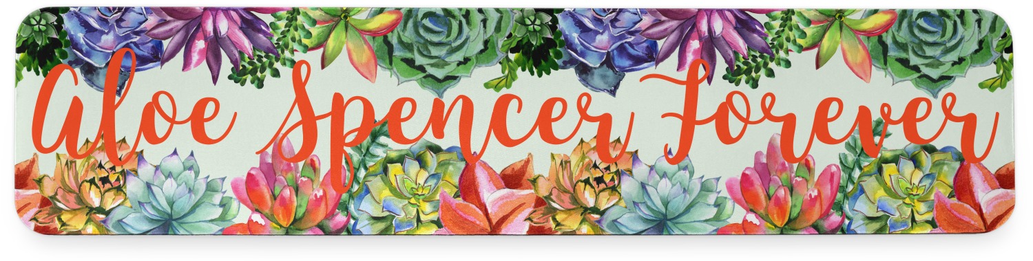 This design is made up of a beautiful frame of succulent illustrations. Because of the nature of the frame, this design will look different on every product. The background is a calming light green. The middle text says "Spencer, Aloe You Forever", which can easily be personalized to your own name or someone else's. You will find orange, green, purple, pink, and orange in this lovely design.
