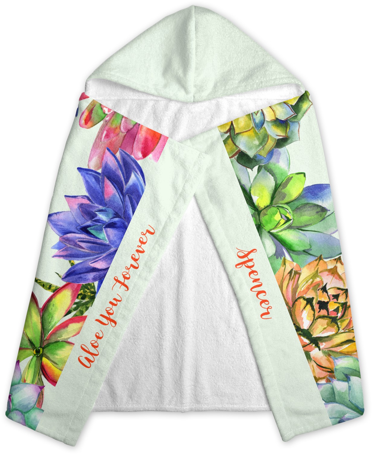 Wrap your kid in plush comfort when they come out from the bath or pool with one of our kids' hooded towels! These personalized hooded towels for kids are ideal for days at the beach or waterpark, or when they simply want to play in the sprinklers on a hot summer's day! Customize one with your child's name, favorite colors, graphics, and patterns on them to make it truly one-of-a-kind!