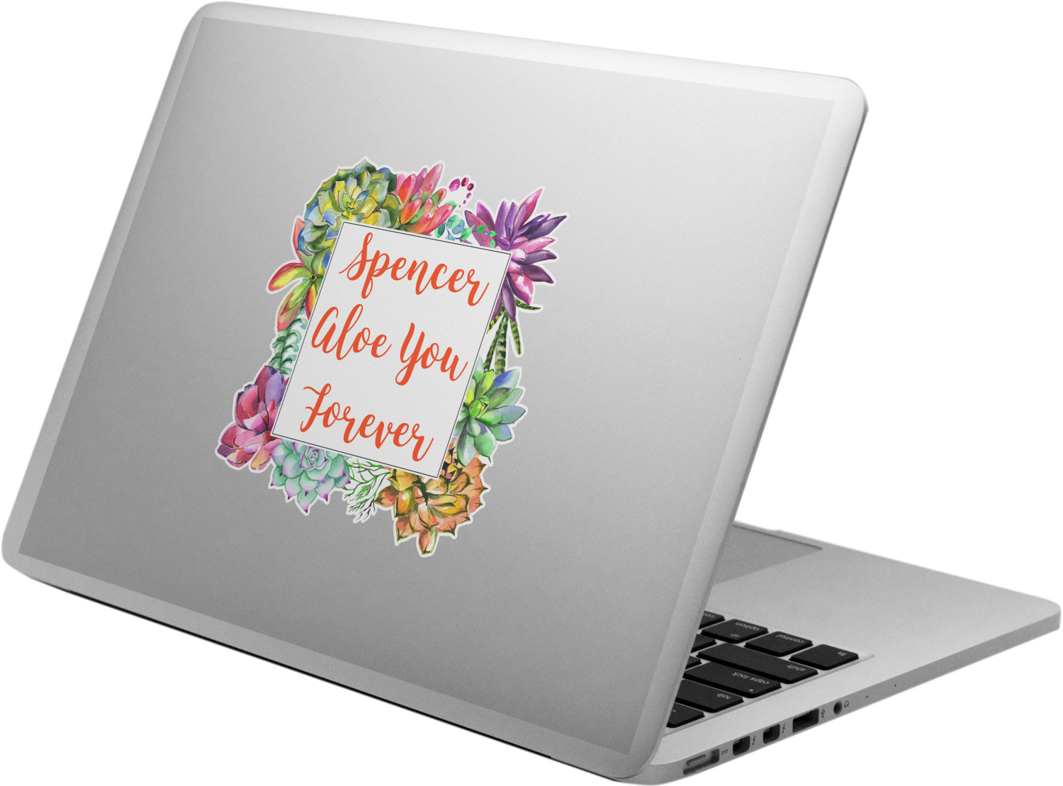 The result is a durable shaped decal that permanently adheres to your laptop. The standard size for these decals is 7" width x 5" height. However, you may customize your decal's size from 1" - 18" in both width and height.