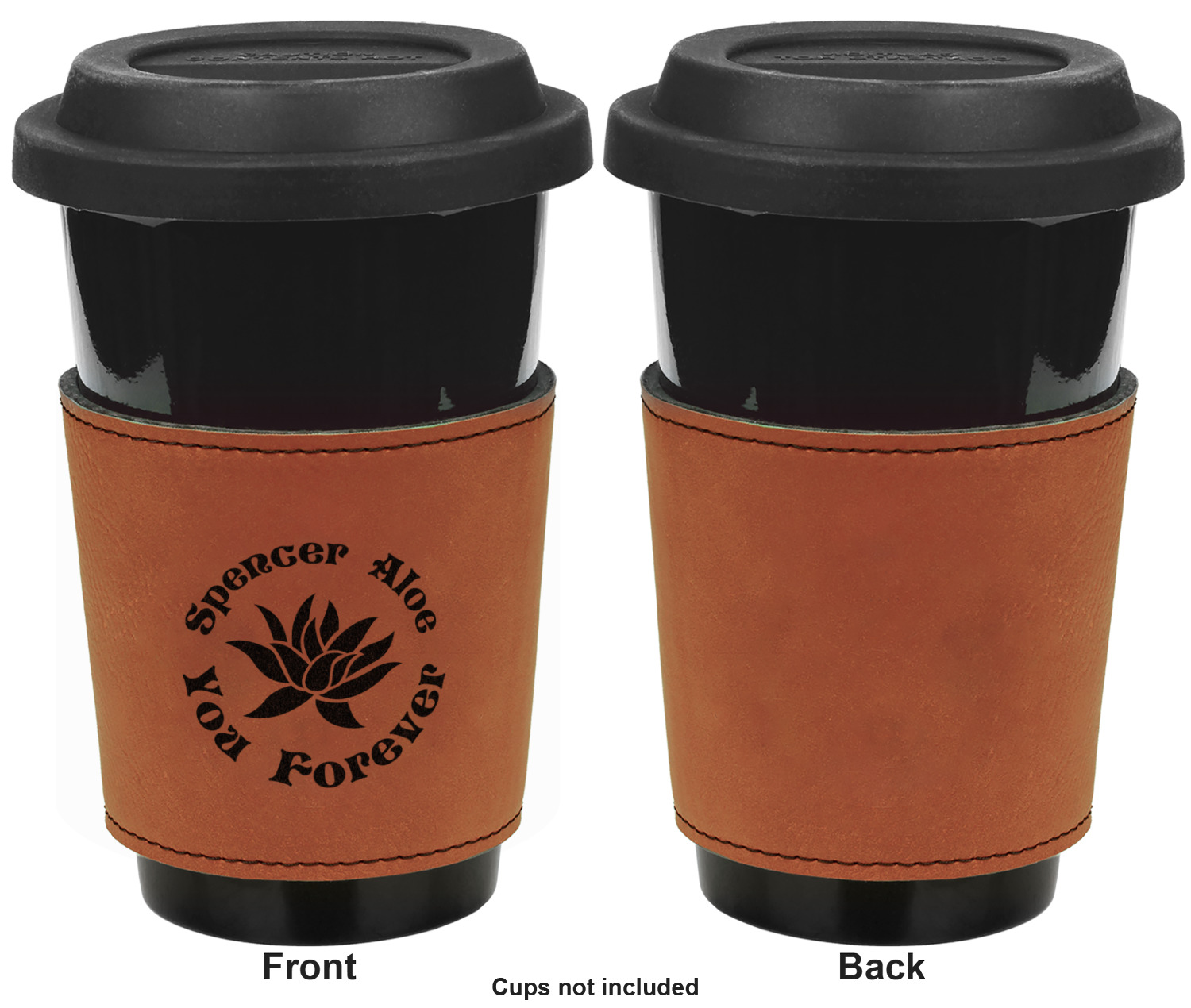 This cup sleeve is made from a suave, cognac-brown leatherette and finished with an intricate, black stitch. The interior of this can sleeve is fabricated from a thin foam material to help insulate your mug's contents. The sleeve is specifically made to suit tapered glasses or mugs, so the top's diameter is 3.5 inches, while the bottom's diameter is 2.75 inches. Your customized design will be laser engraved into the leatherette, leaving behind crisp, black imprint. With these products, we provide you with the option of engraving the front and back, or the front only.