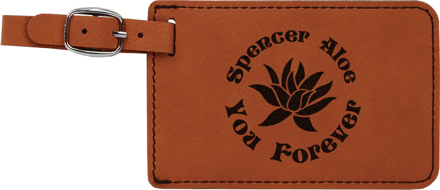 This luggage tag will surely be able to get you started in having all the right tools for traveling. It is made of a beautiful leatherette material that is a nice shade of cognac brown. The front of the tag is where your design goes. The sturdy black stitching gives your design an extra pop and gives the tag extra durability. The back of the tag has a clear vinyl window where you can slip in your address card. The tag comes with a great little buckle strap that you can easily use to clip to your suitcase. The tag itself measures at approximately 5.5"W x 4.25"H.