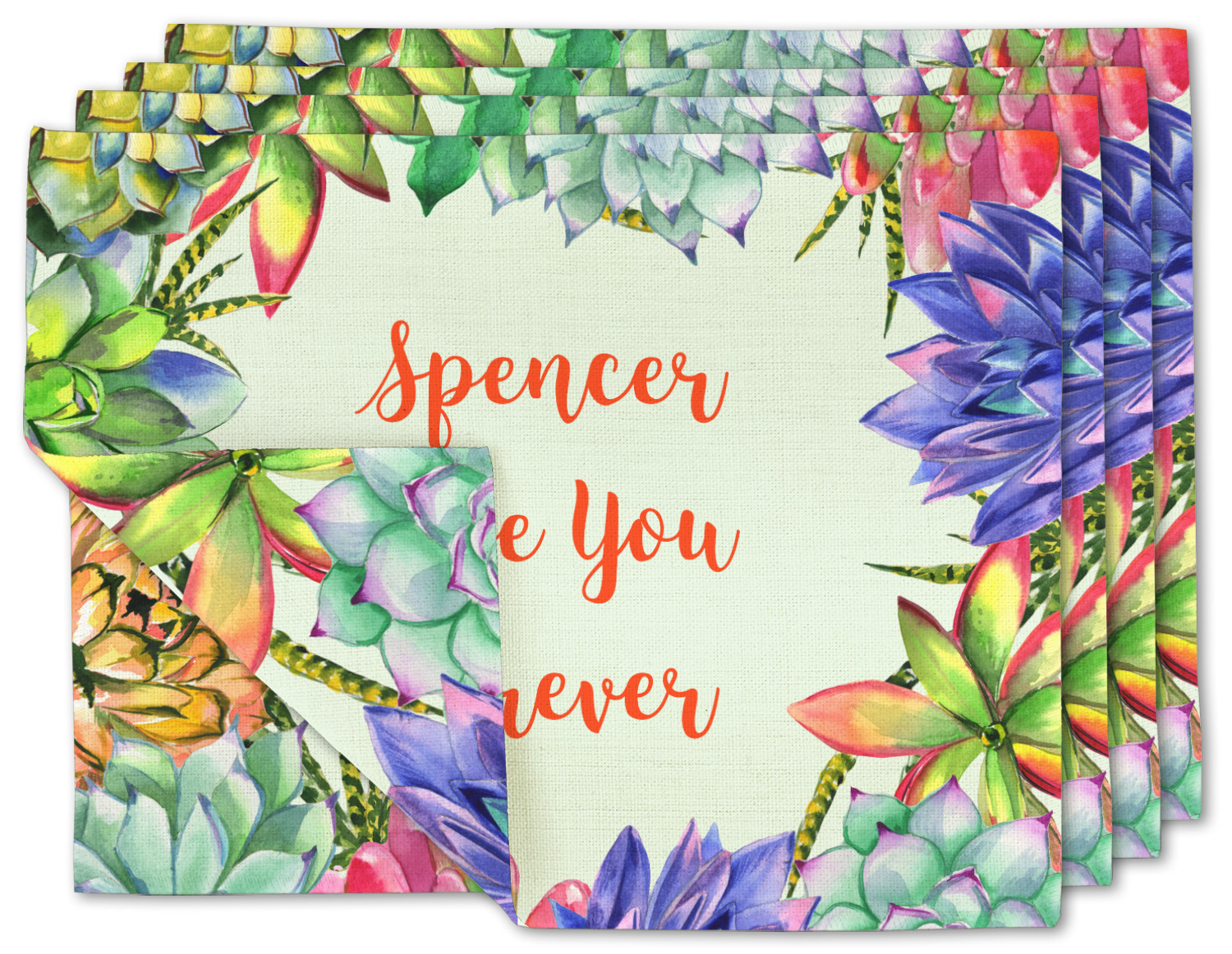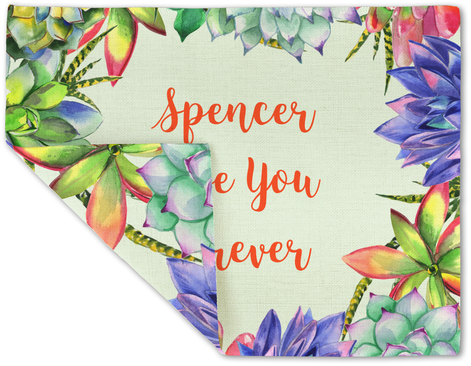 This design is made up of a beautiful frame of succulent illustrations. Because of the nature of the frame, this design will look different on every product. The background is a calming light green. The middle text says "Spencer, Aloe You Forever", which can easily be personalized to your own name or someone else's. You will find orange, green, purple, pink, and orange in this lovely design.