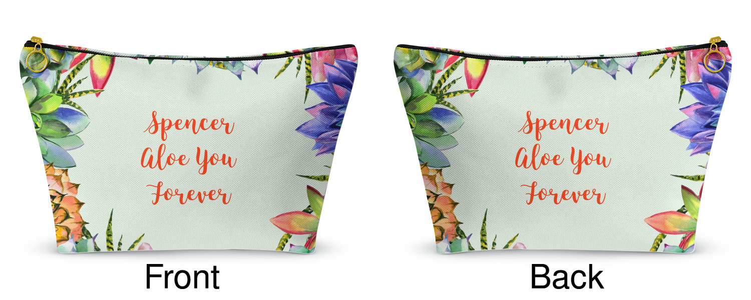 This design is made up of a beautiful frame of succulent illustrations. Because of the nature of the frame, this design will look different on every product. The background is a calming light green. The middle text says "Spencer, Aloe You Forever", which can easily be personalized to your own name or someone else's. You will find orange, green, purple, pink, and orange in this lovely design.