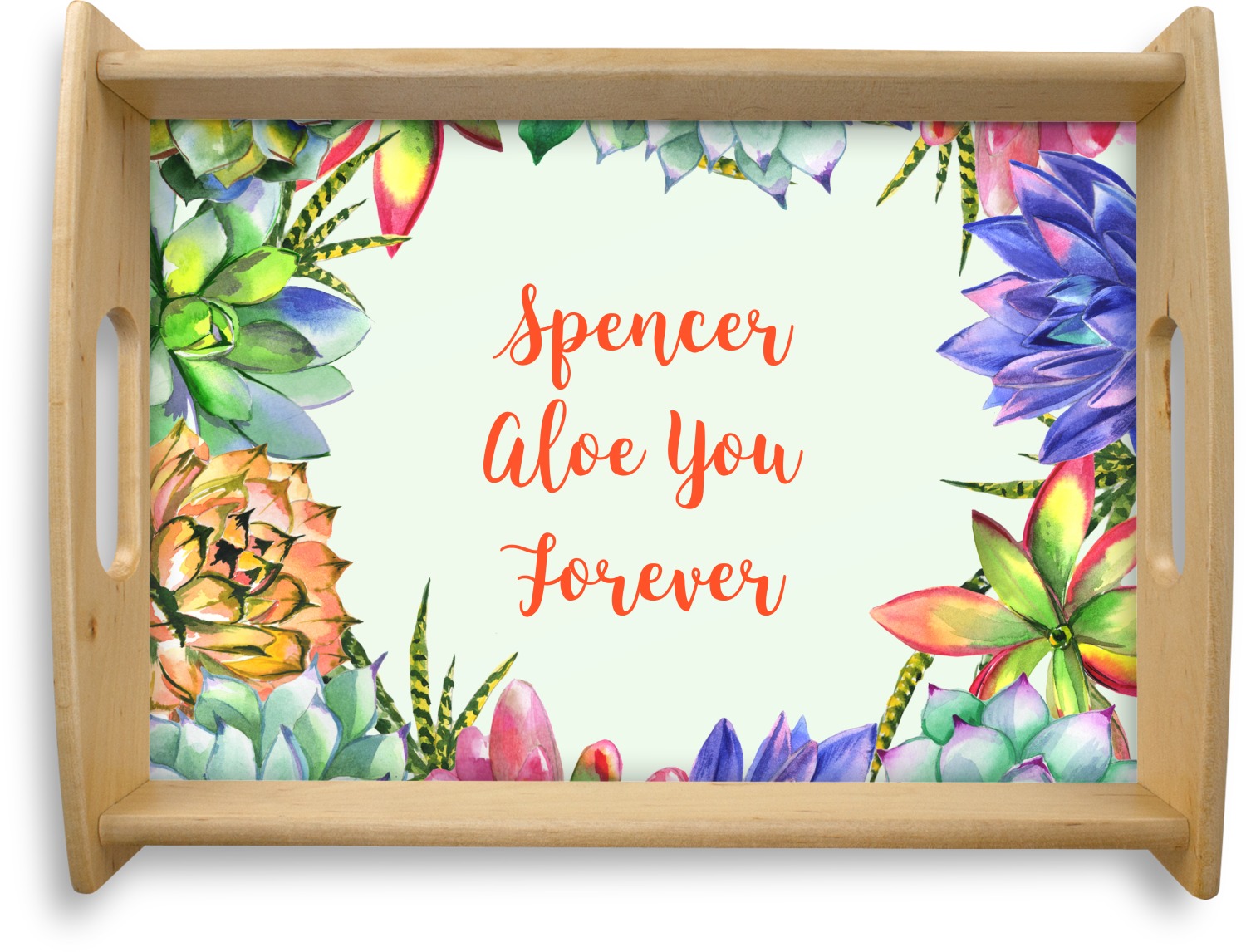 This design is made up of a beautiful frame of succulent illustrations. Because of the nature of the frame, this design will look different on every product. The background is a calming light green. The middle text says "Spencer, Aloe You Forever", which can easily be personalized to your own name or someone else's. You will find orange, green, purple, pink, and orange in this lovely design.