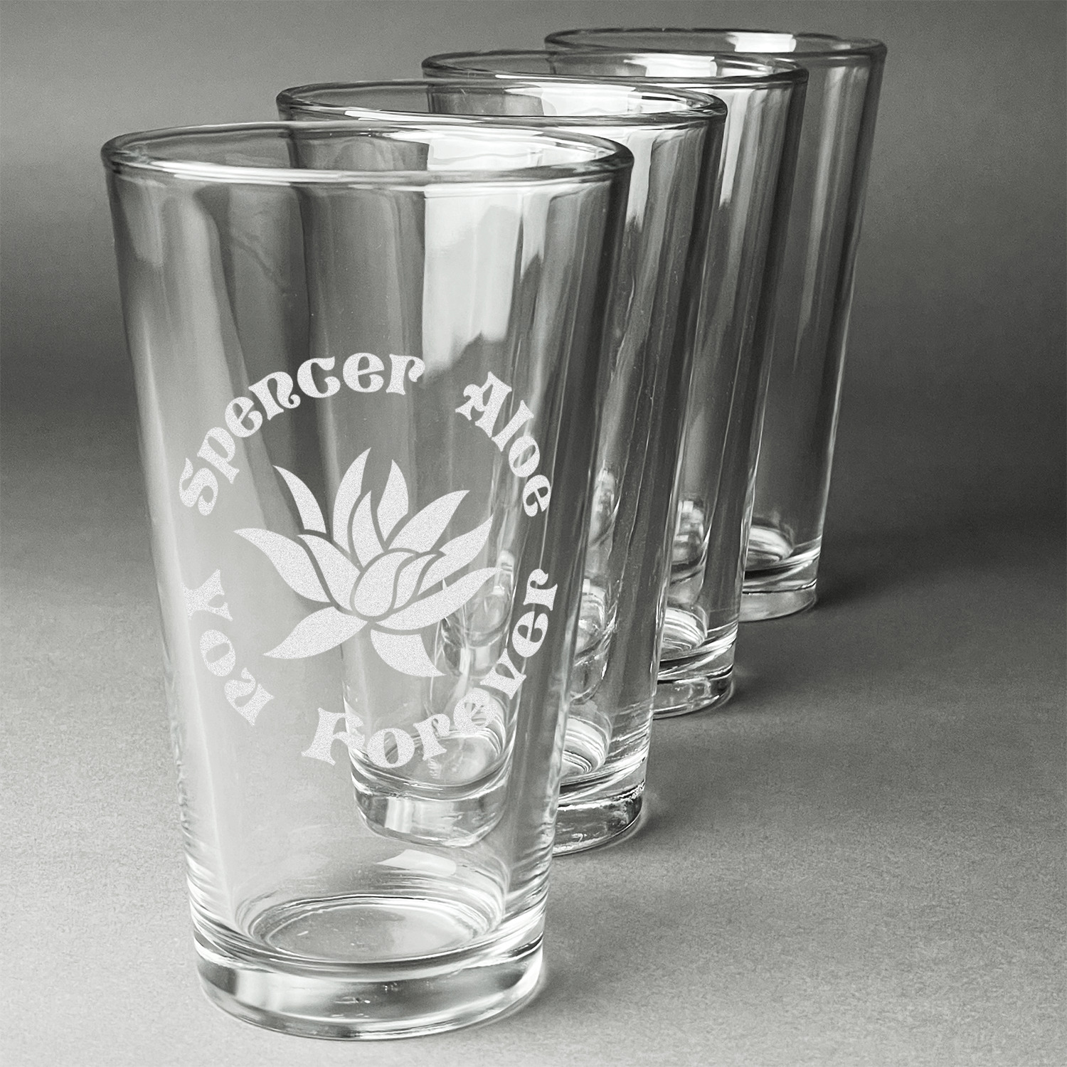 Available in a single glass or a set of 4 - each glass will be custom engraved with your design. Each glass holds 16 oz and measure 5.75"H x 3.5"W.