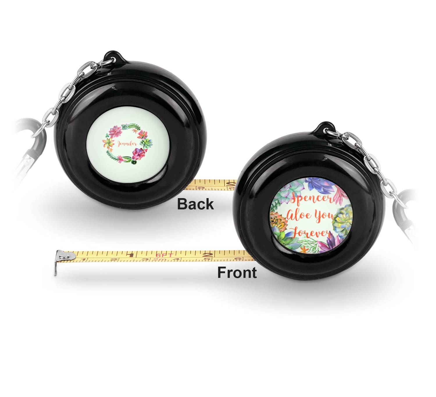 Now for personalizing! You get to personalize both sides of your tape measure. Have fun picking a cute pattern, font, or graphic! Make your personality shine through this fun tool.