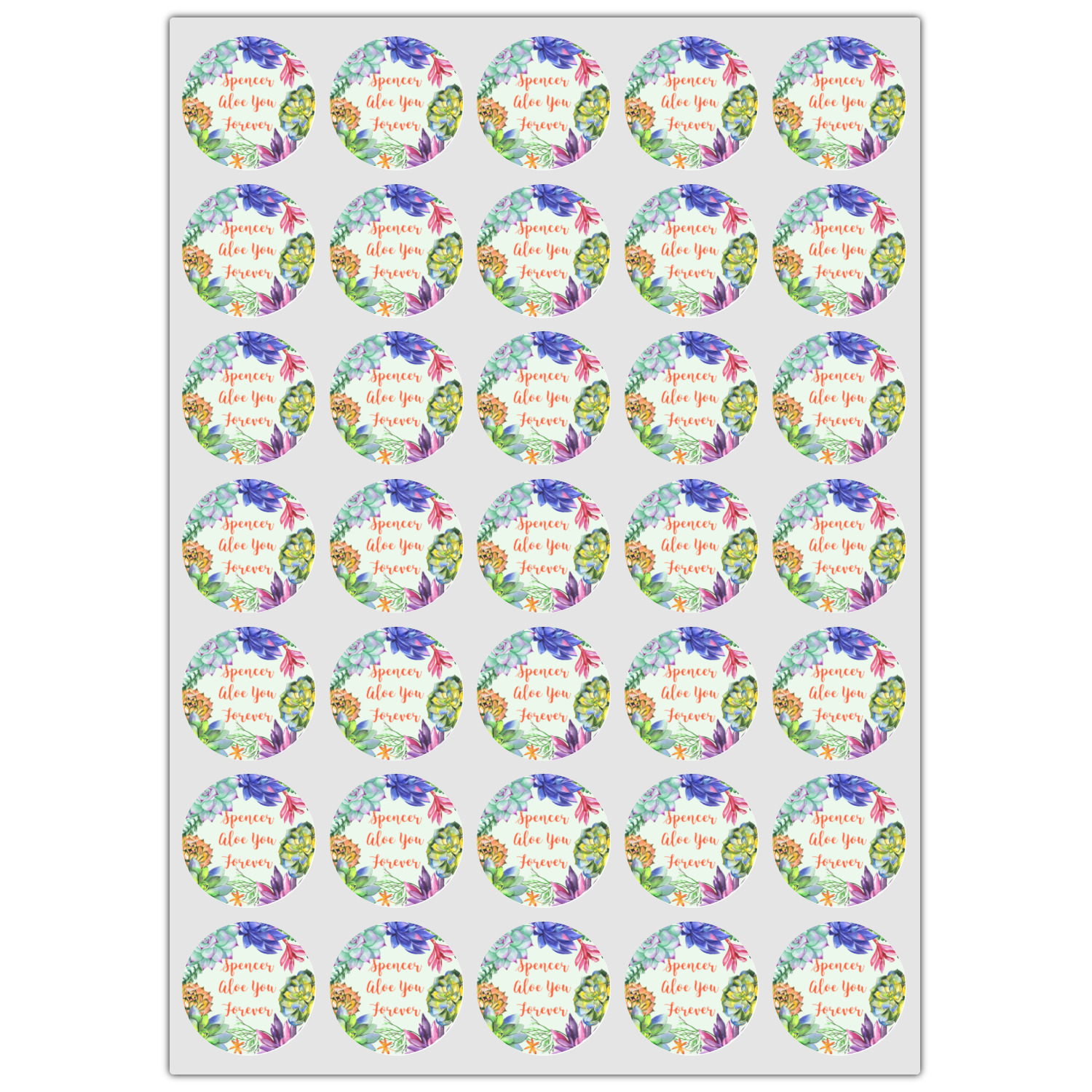 This design is made up of a beautiful frame of succulent illustrations. Because of the nature of the frame, this design will look different on every product. The background is a calming light green. The middle text says "Spencer, Aloe You Forever", which can easily be personalized to your own name or someone else's. You will find orange, green, purple, pink, and orange in this lovely design.