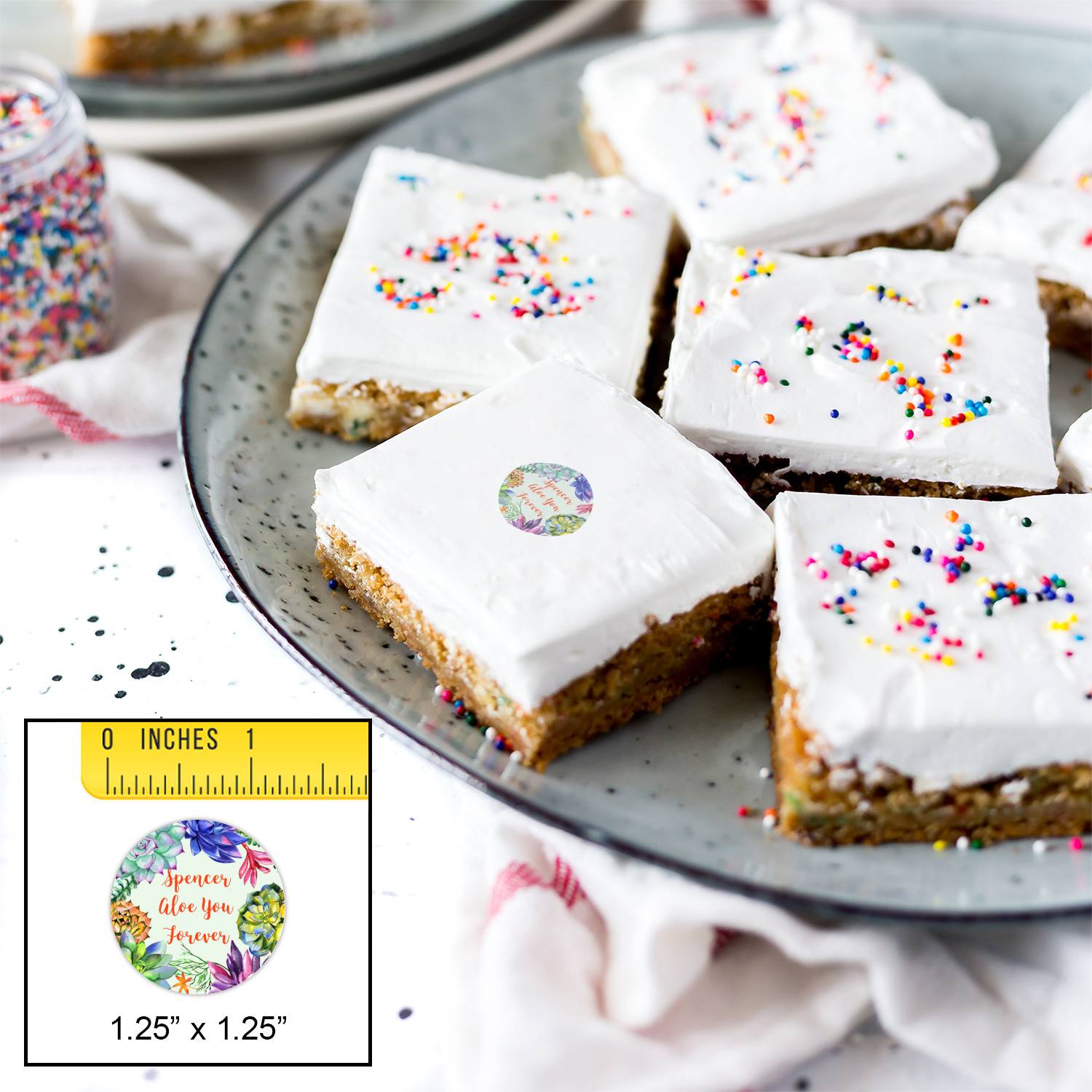Your customized cookie toppers can be placed on top of any dessert with an icing top.The icing helps adhere the cookie topper to the dessert.