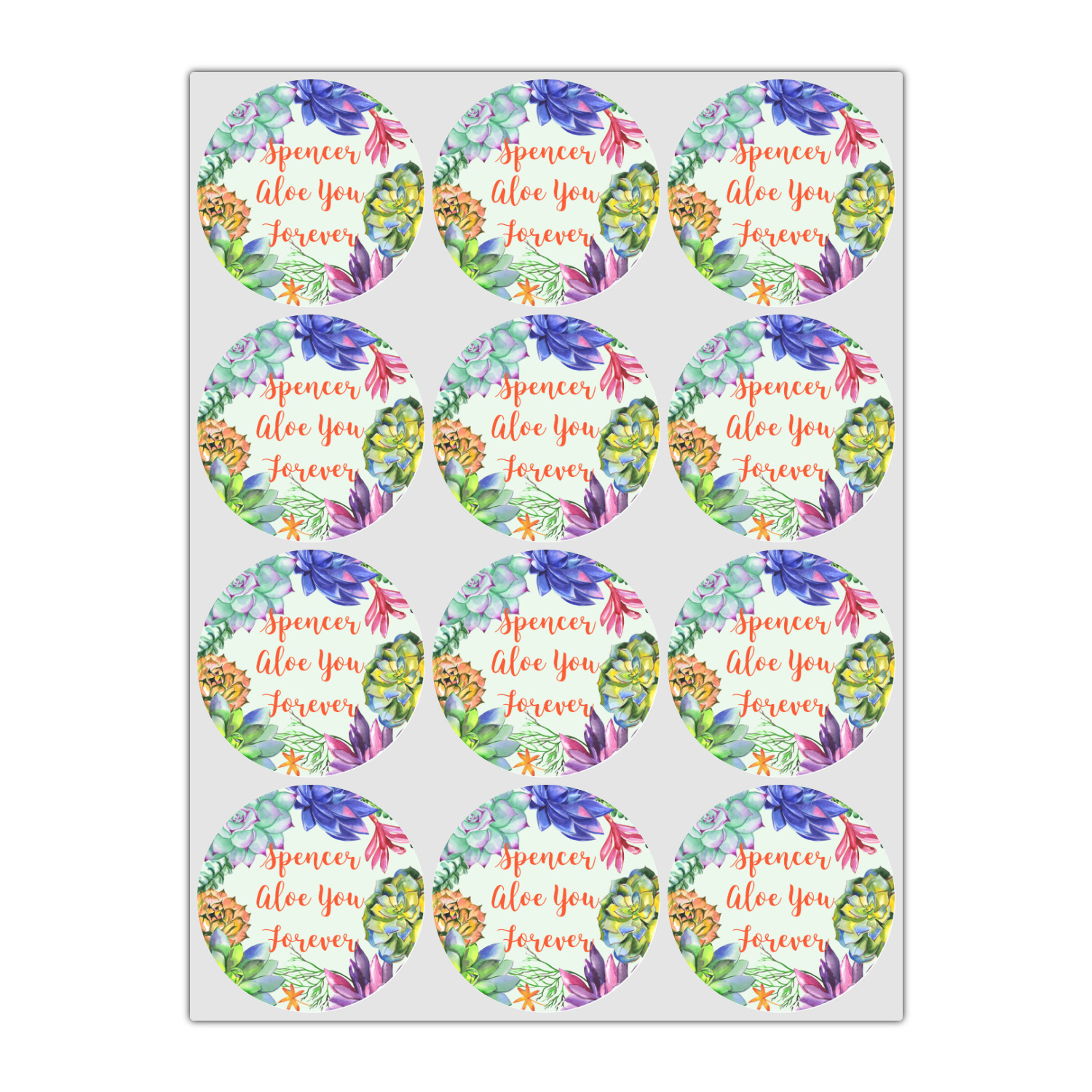 This design is made up of a beautiful frame of succulent illustrations. Because of the nature of the frame, this design will look different on every product. The background is a calming light green. The middle text says "Spencer, Aloe You Forever", which can easily be personalized to your own name or someone else's. You will find orange, green, purple, pink, and orange in this lovely design.