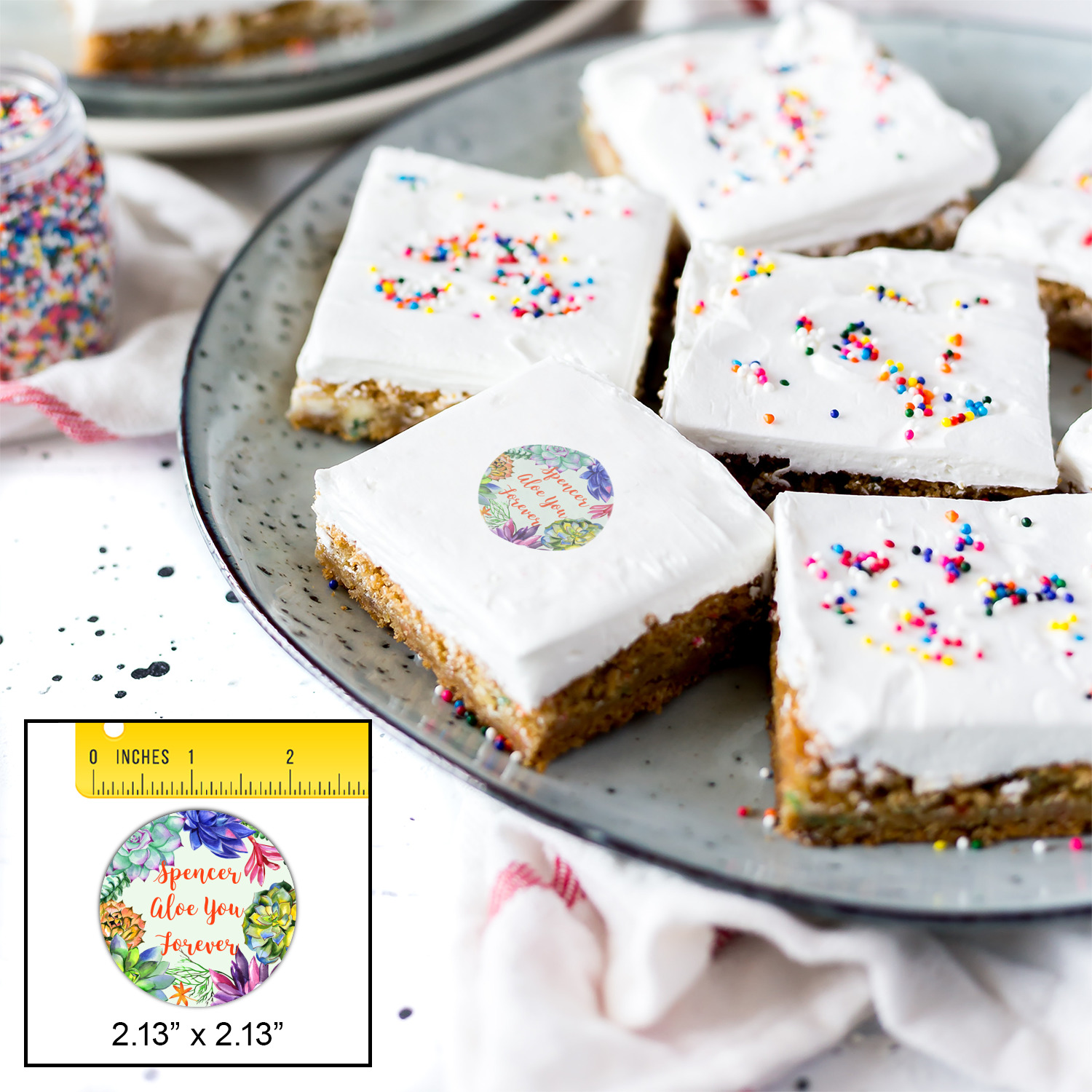 Your customized cookie toppers can be placed on top of any dessert with an icing top.The icing helps adhere the cookie topper to the dessert.