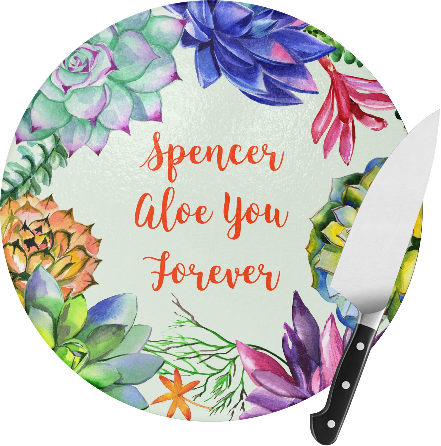 Prep your meals with passion when you use our personalized round cutting boards. The personalization options we offer really make them one of a kind and they are available in delightful colors and designs that might just keep you smiling instead off crying when you're cutting onions!!
