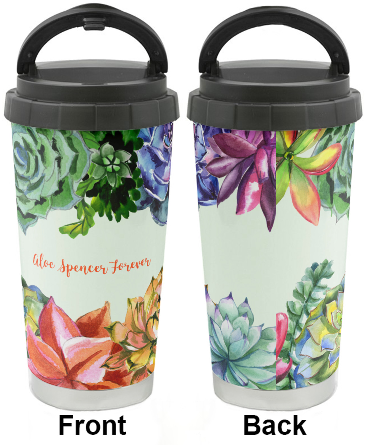 This sleek and tapered 16 oz stainless steel travel cup is a perfect fit in the hand. With the strip of visible stainless steel on the bottom, you'll be feeling classy!
