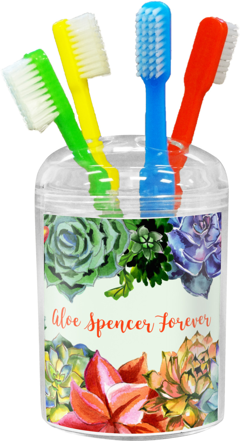 These bathroom toothbrush holders are built from acrylic, making them durable enough to withstand daily use. The stand itself is made of three different pieces: an inner cup, a base, and the lid featuring the four holes. Each toothbrush stand has a twist-off lid for easy cleaning and also features 4 holes to accommodate 4 toothbrushes. While designed for toothbrushes, these holders are multifunctional, and can be used for makeup brushes, paintbrushes, and more! Your customization is displayed on the side of this product on a fine-quality, vinyl insert.