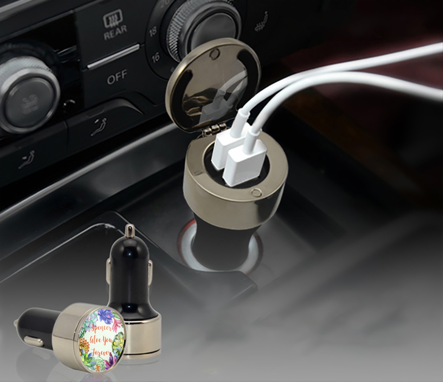 Incorporate a custom accent to your travels with this USB car charger! Our USB car adapters strike the perfect balance between style and functionality and make such practical gifts for loved ones!
