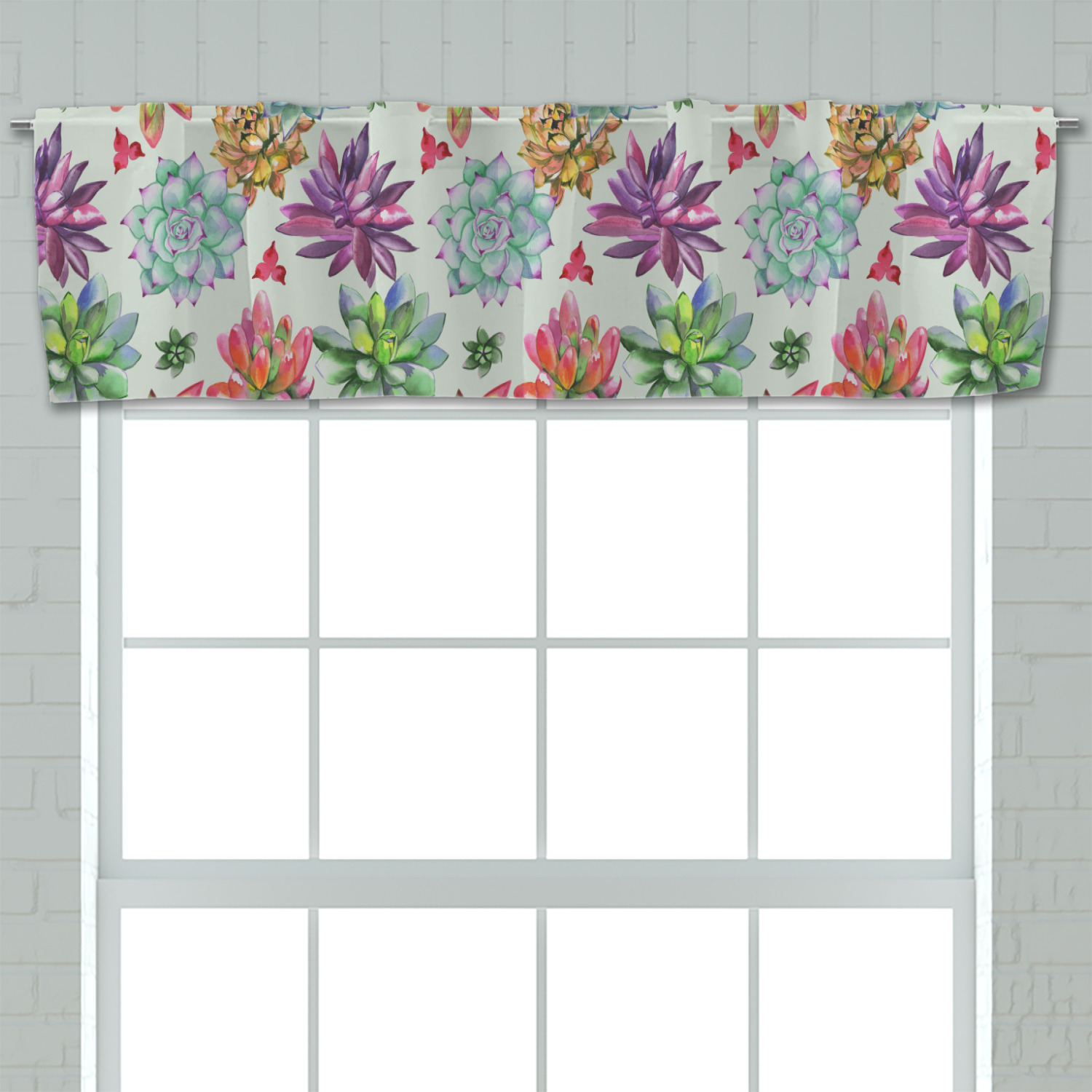 The valances have a 2" rod pocket for easy hanging and are made of durable polyester that has a light sheen finish. They measure approximately 60" wide and 14" tall.