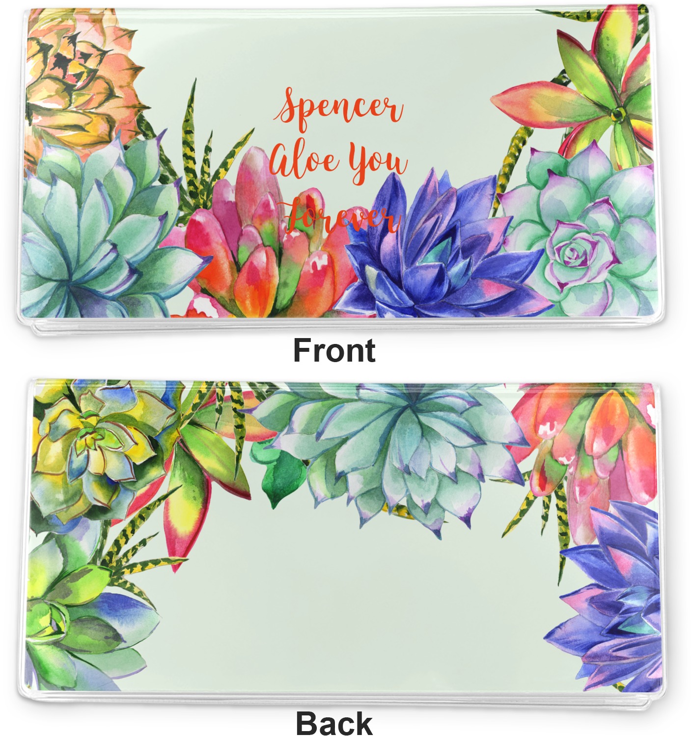 This checkbook cover is a similar shape and size to what the bank sends, but is a million times better. It is made of clear vinyl to give your cover a sturdier and more durable feeling. This checkbook cover has two large slots to keep your checks and your transaction register. It comes with all the necessary tabs to put between your checks as well. It easily folds closed so that you can see your design on the front and the back. It is the perfect way to stay slim and stylish at the same time.