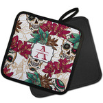 Amidst the flowers and smiling skulls, a label rests in the center, the perfect place for the personalization of your choice.