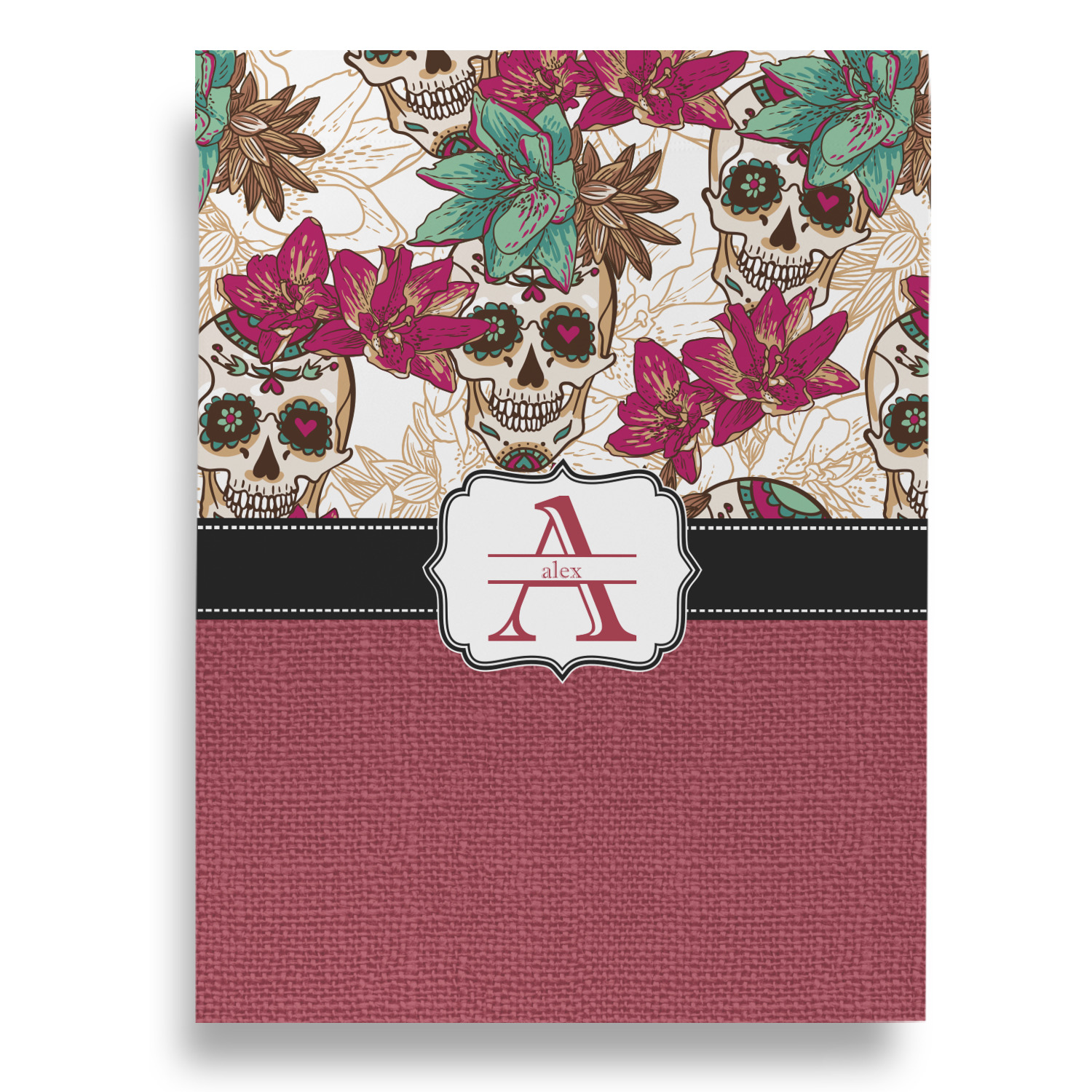 This design is full of sugar, spice, and everything nice, featuring the traditional Mexican Sugar Skulls. The calaveras, the official name of the sugar skulls, in this design are whimsical with flowers and hearts in the eye-sockets in lovely teal and magenta colors.