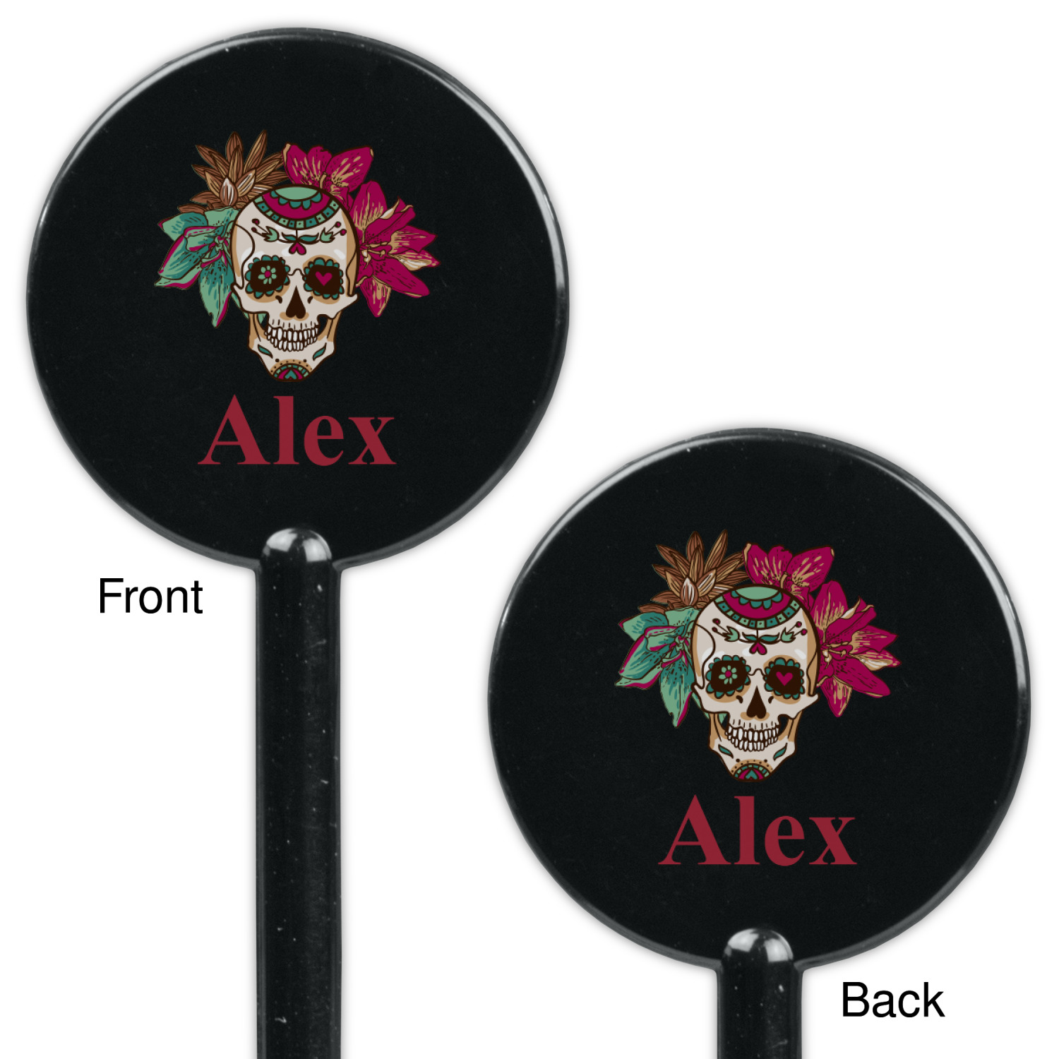Amidst the flowers and smiling skulls, a label rests in the center, the perfect place for the personalization of your choice.