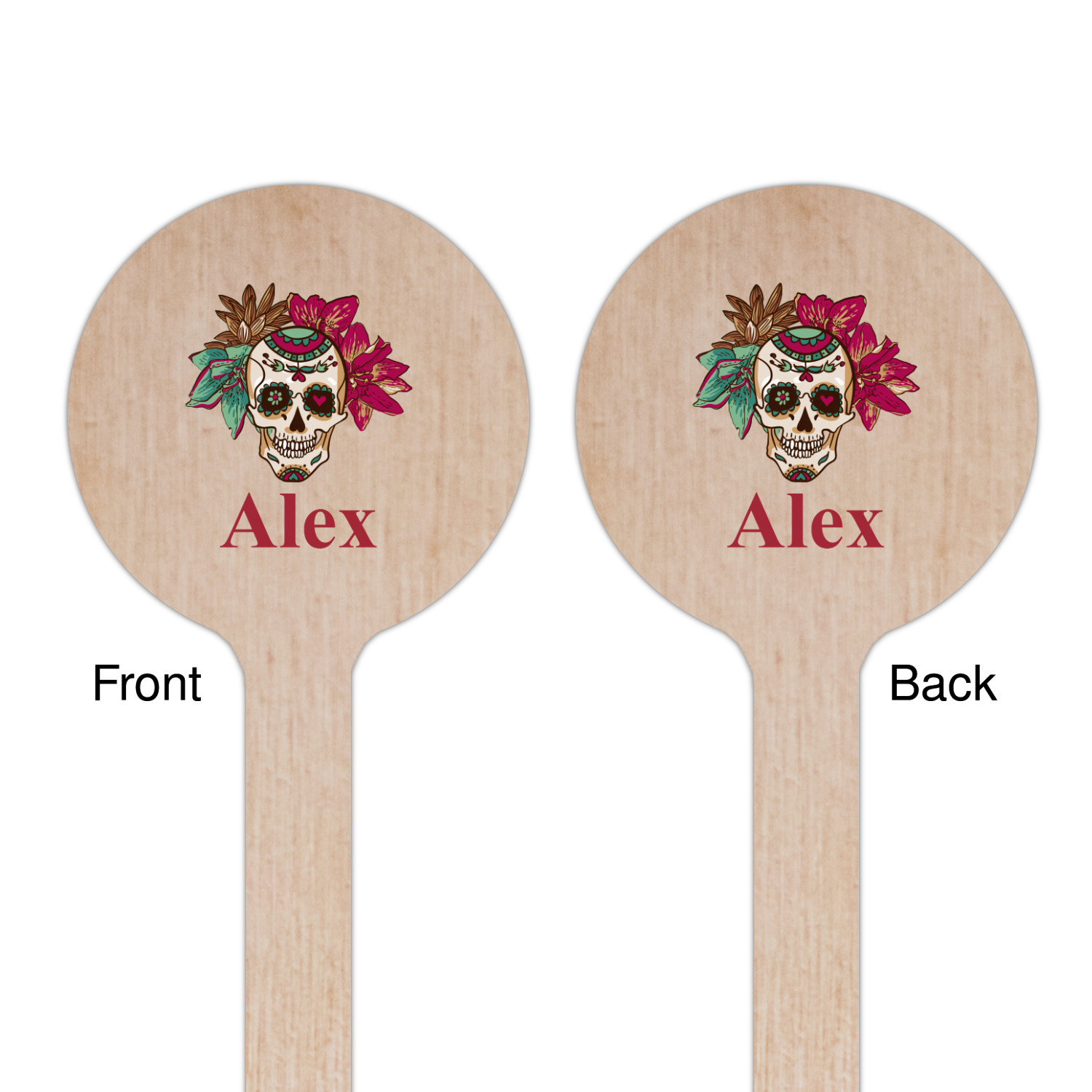 Amidst the flowers and smiling skulls, a label rests in the center, the perfect place for the personalization of your choice.